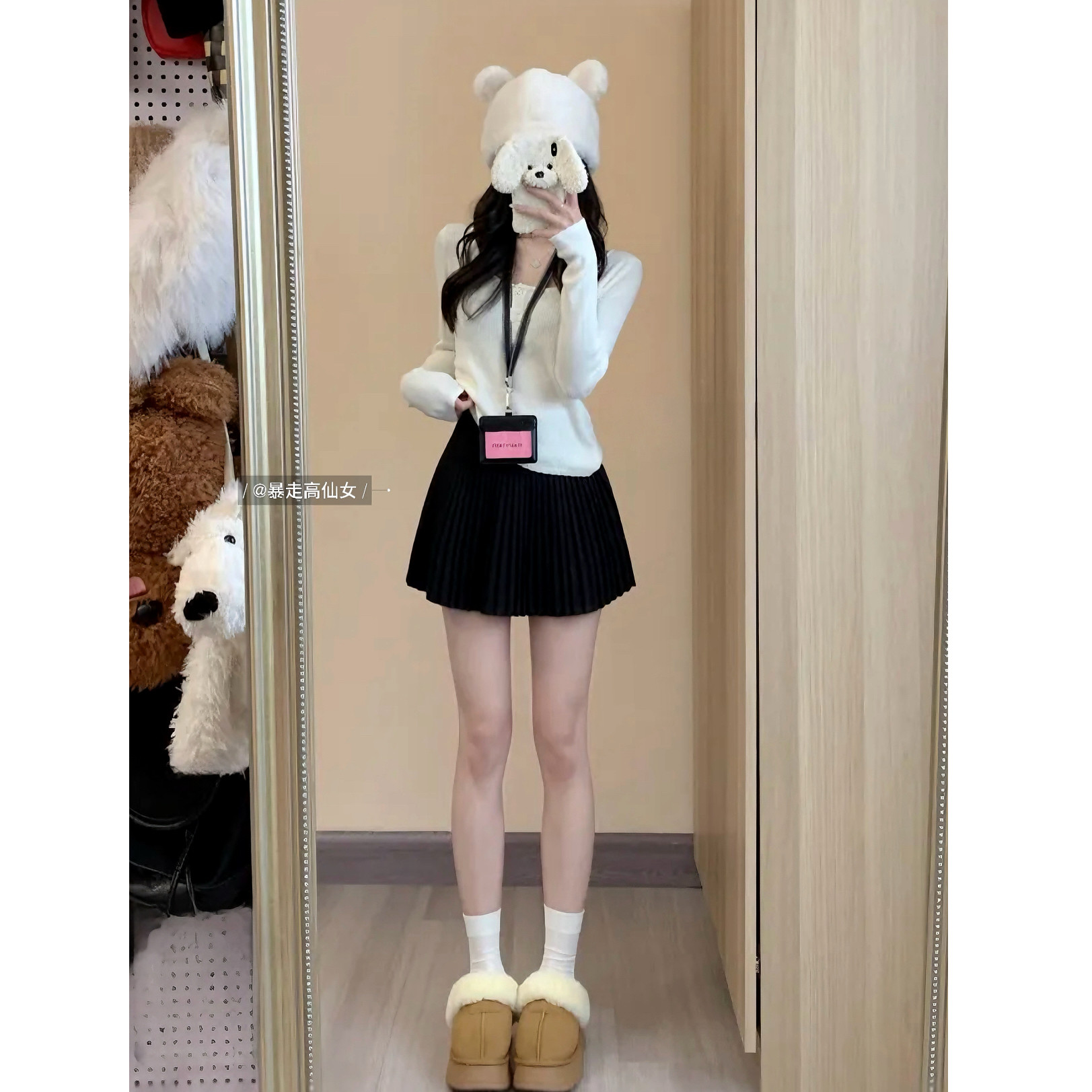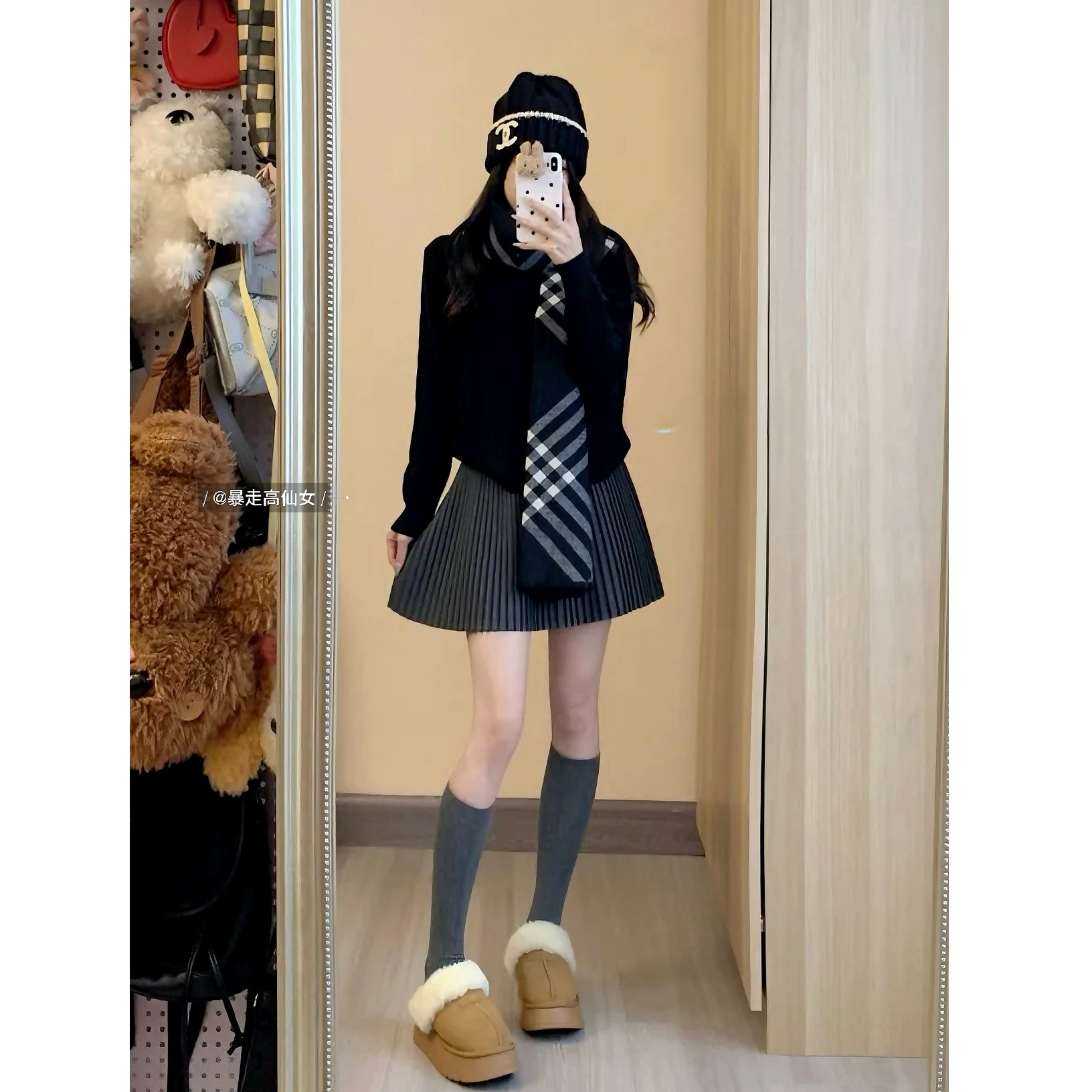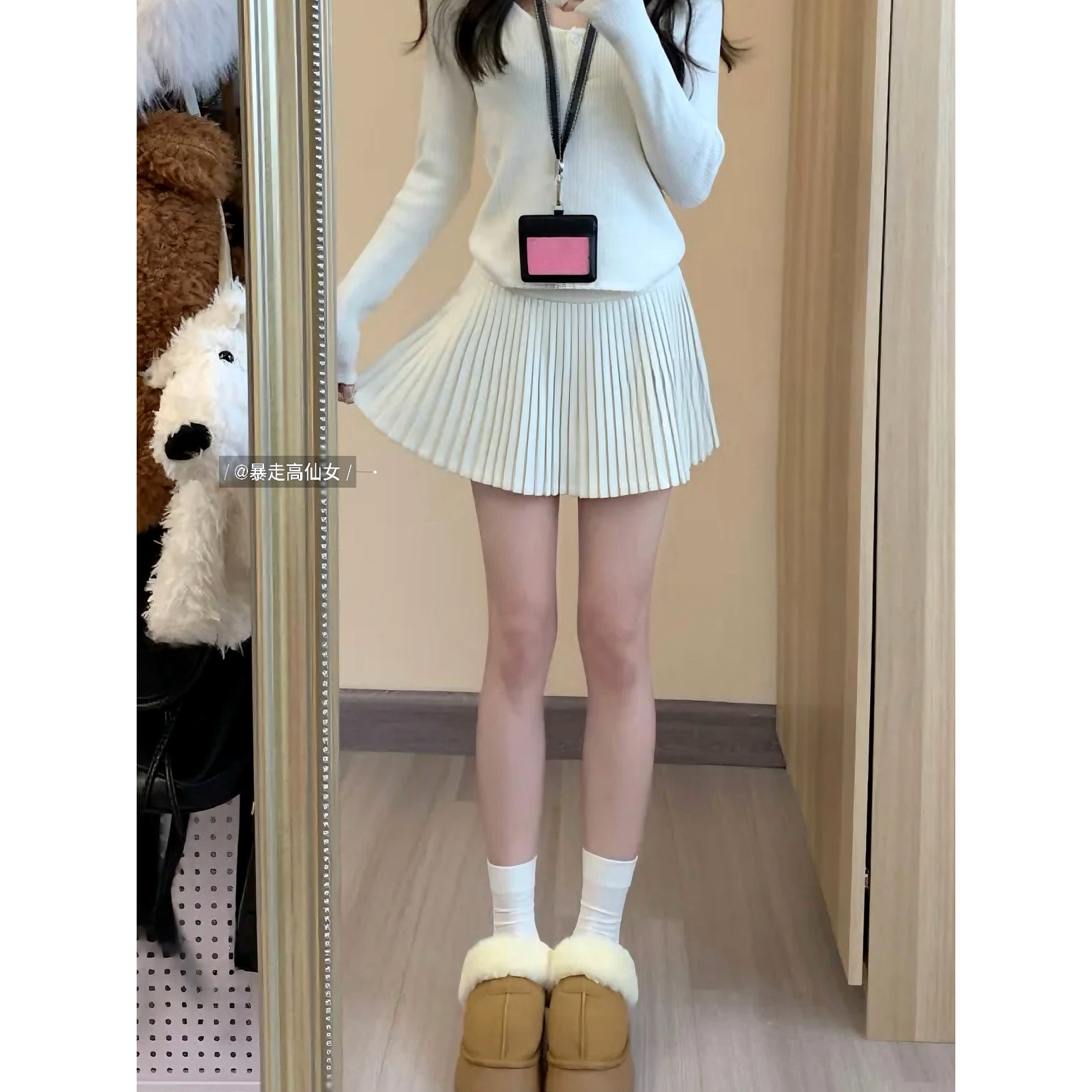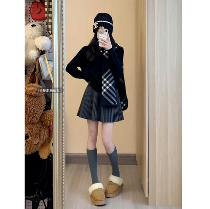 暴走高仙女早秋减龄175高个子加长版毛呢甜美显瘦百褶半身裙短裙