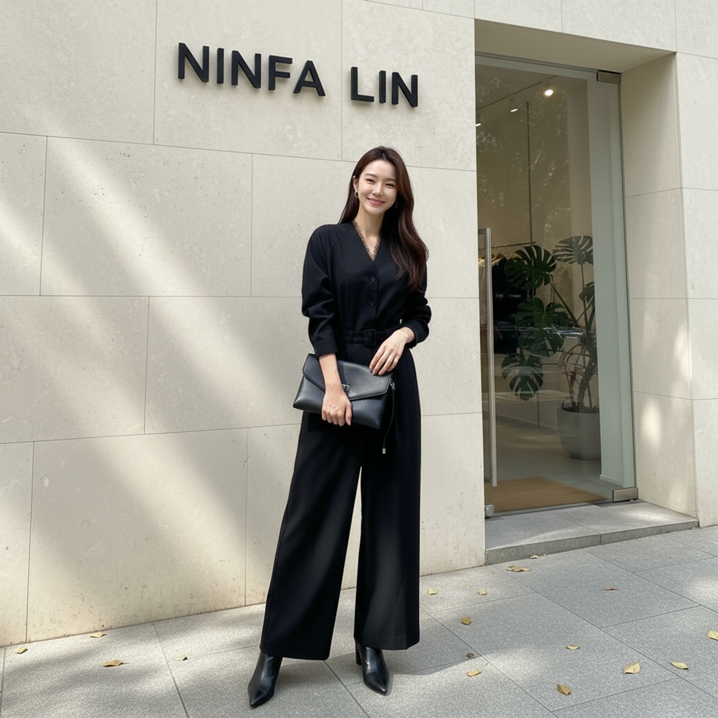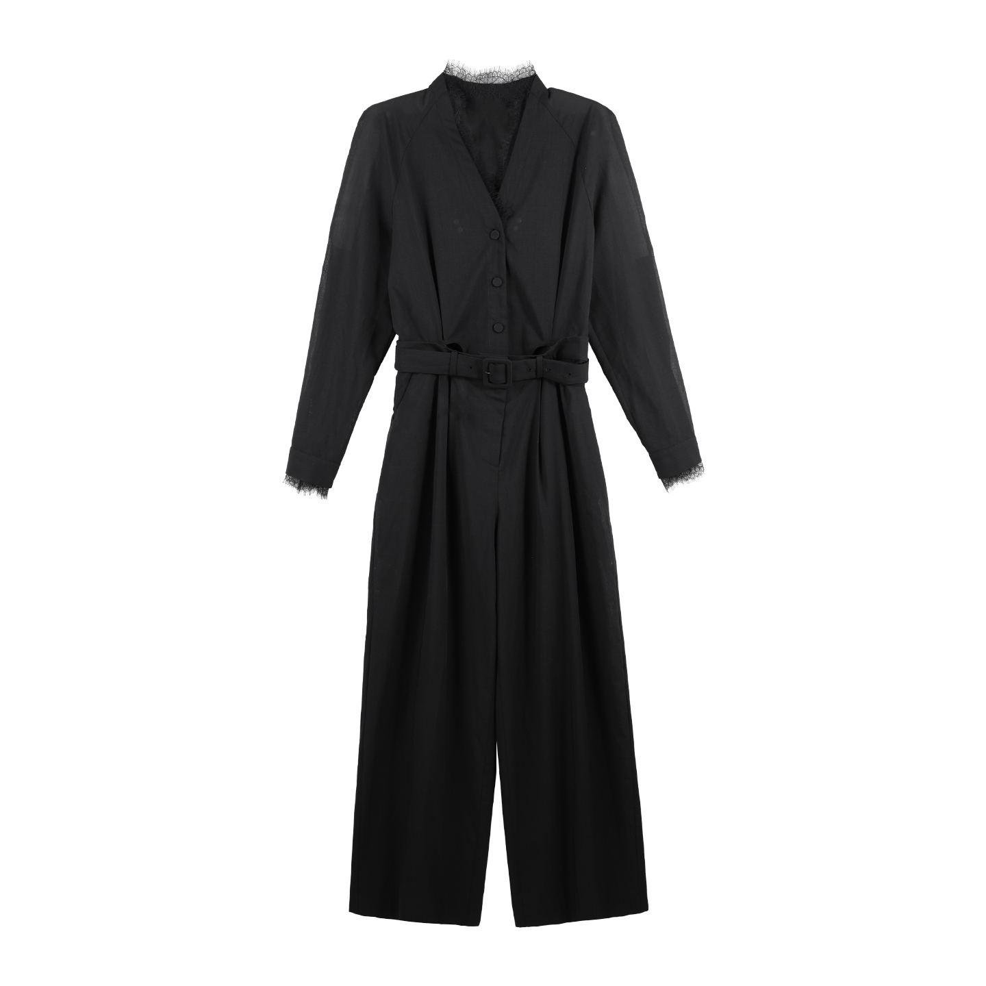收腰优质连体裤女蕾丝拼接V领2025年新款秋连身长裤直筒背带裤