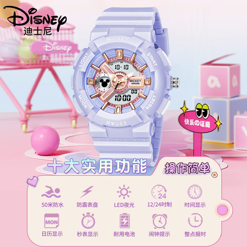 迪士尼儿童手表女孩小学生女款学生只看时间初中女生生日礼物电子