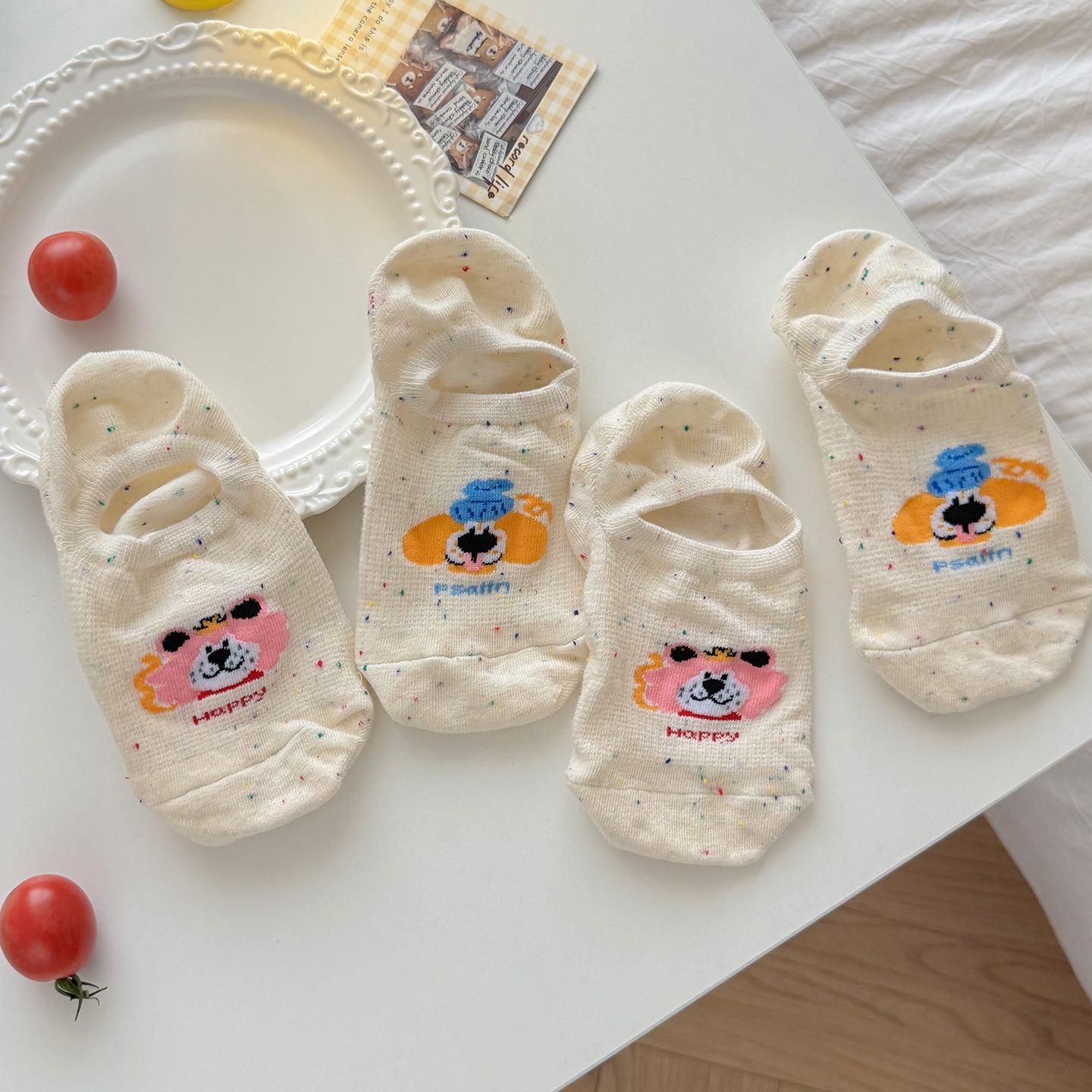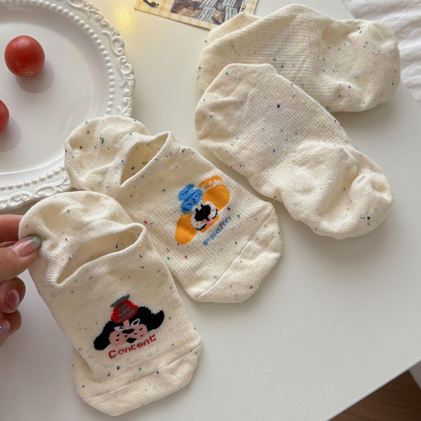 会起球的袜子 日系可爱卡通小狗女士船袜 春夏薄款硅胶防滑浅口袜