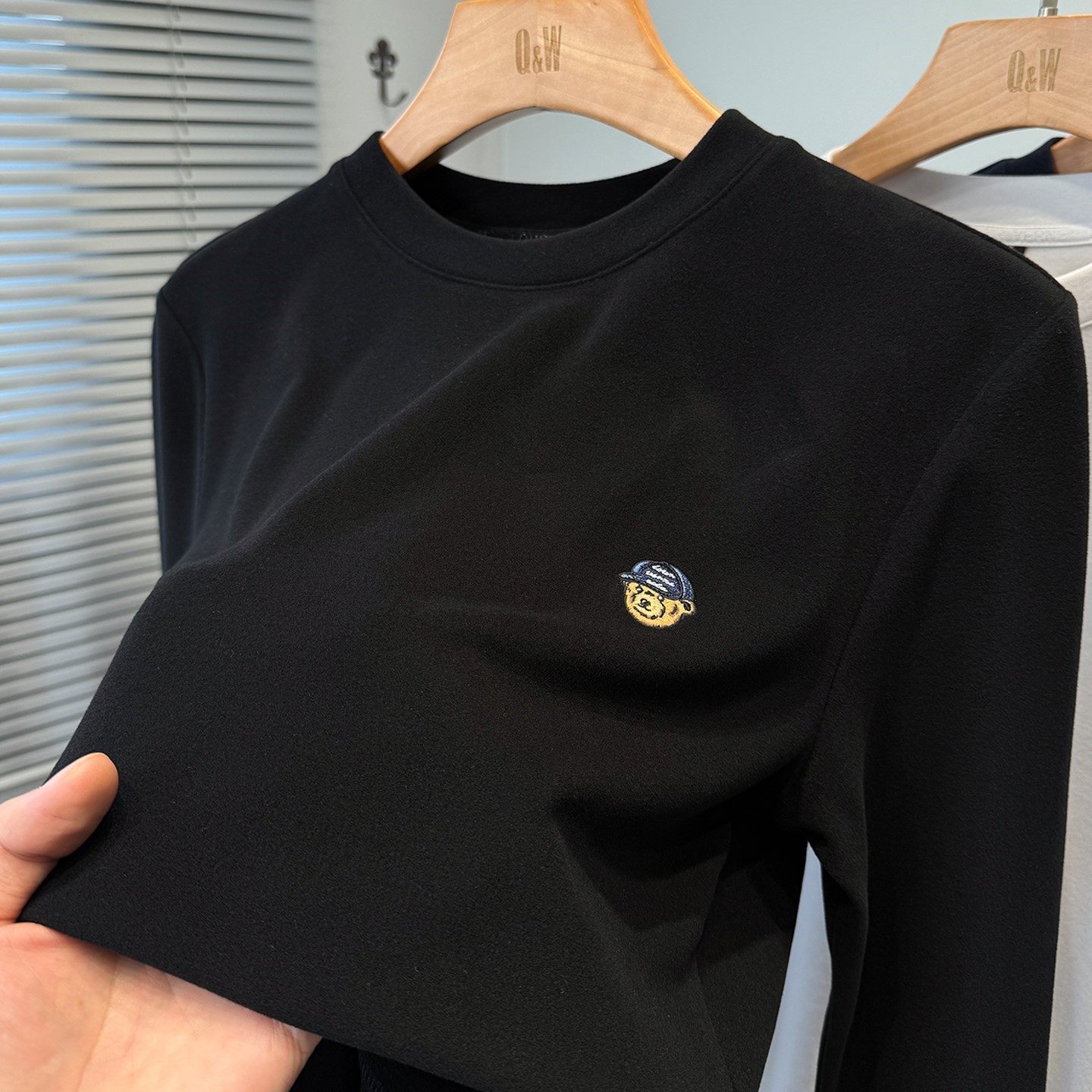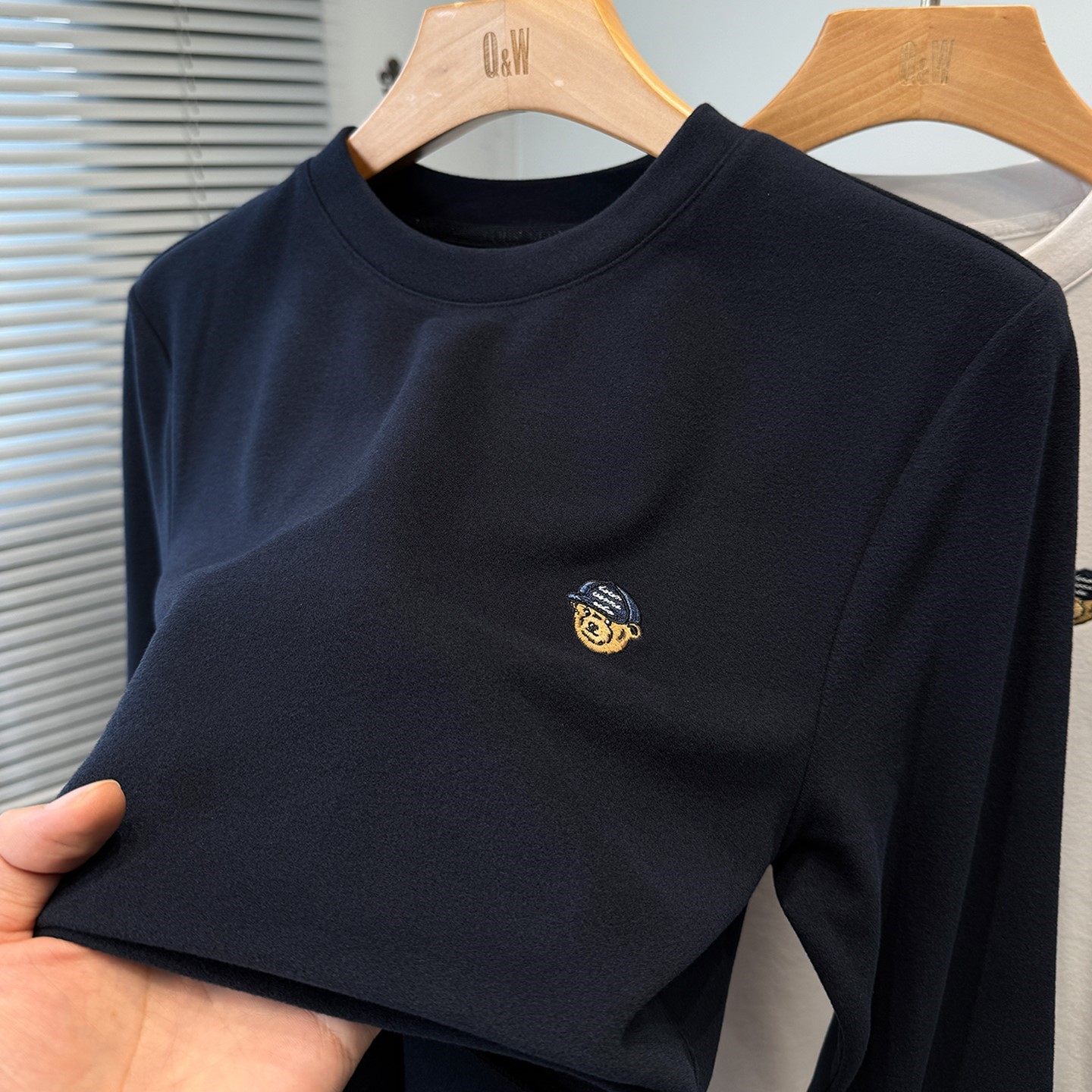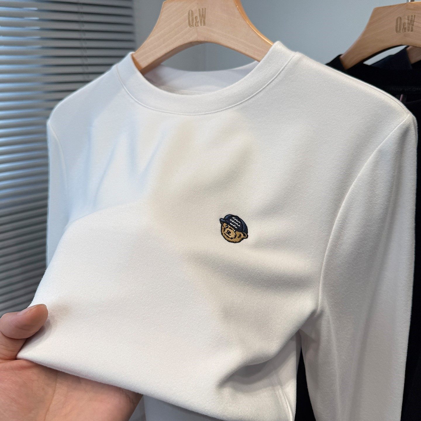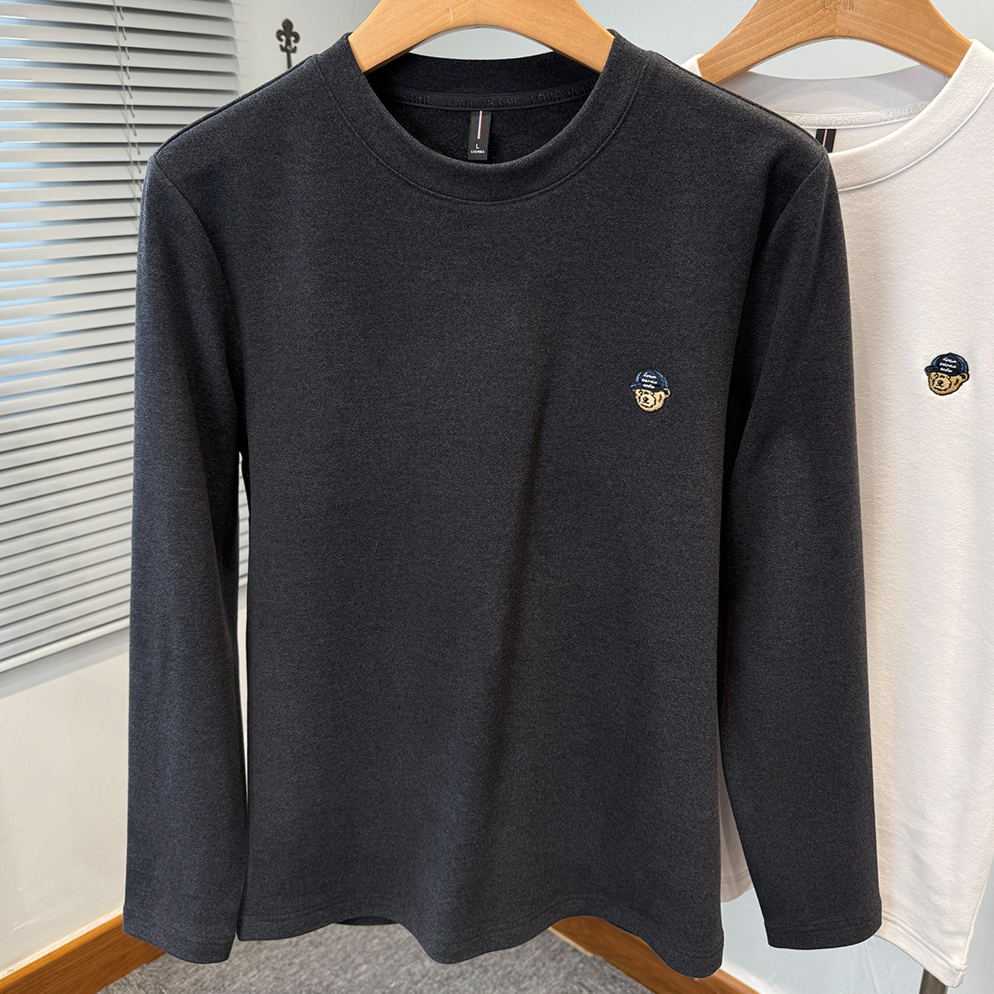 小熊刺绣磨毛德绒打底衫男款长袖