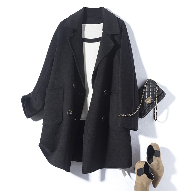 回馈福利巨献 手工拱针线双面羊毛呢大衣双排扣中长款毛呢外套女