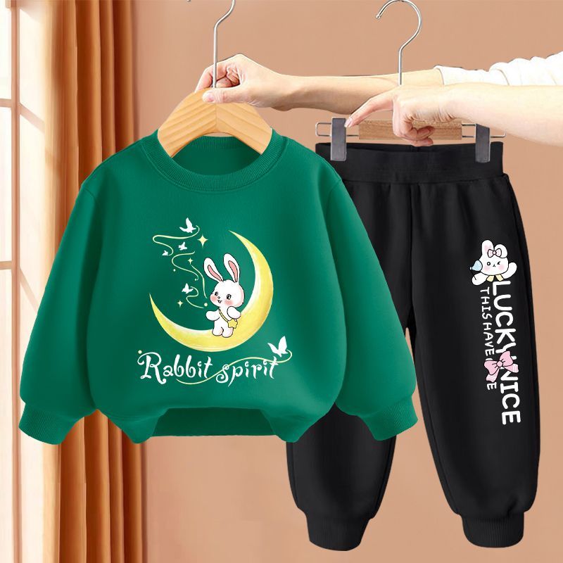 女童春秋款套装2025新款女童秋装薄款长袖秋冬装网红卡通运动套装