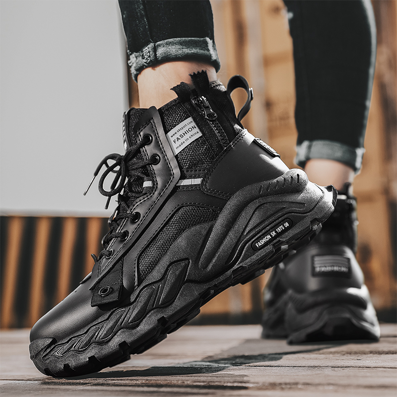高帮男鞋秋季潮流百搭运动休闲高级感青少年厚底增高黑武士马丁靴