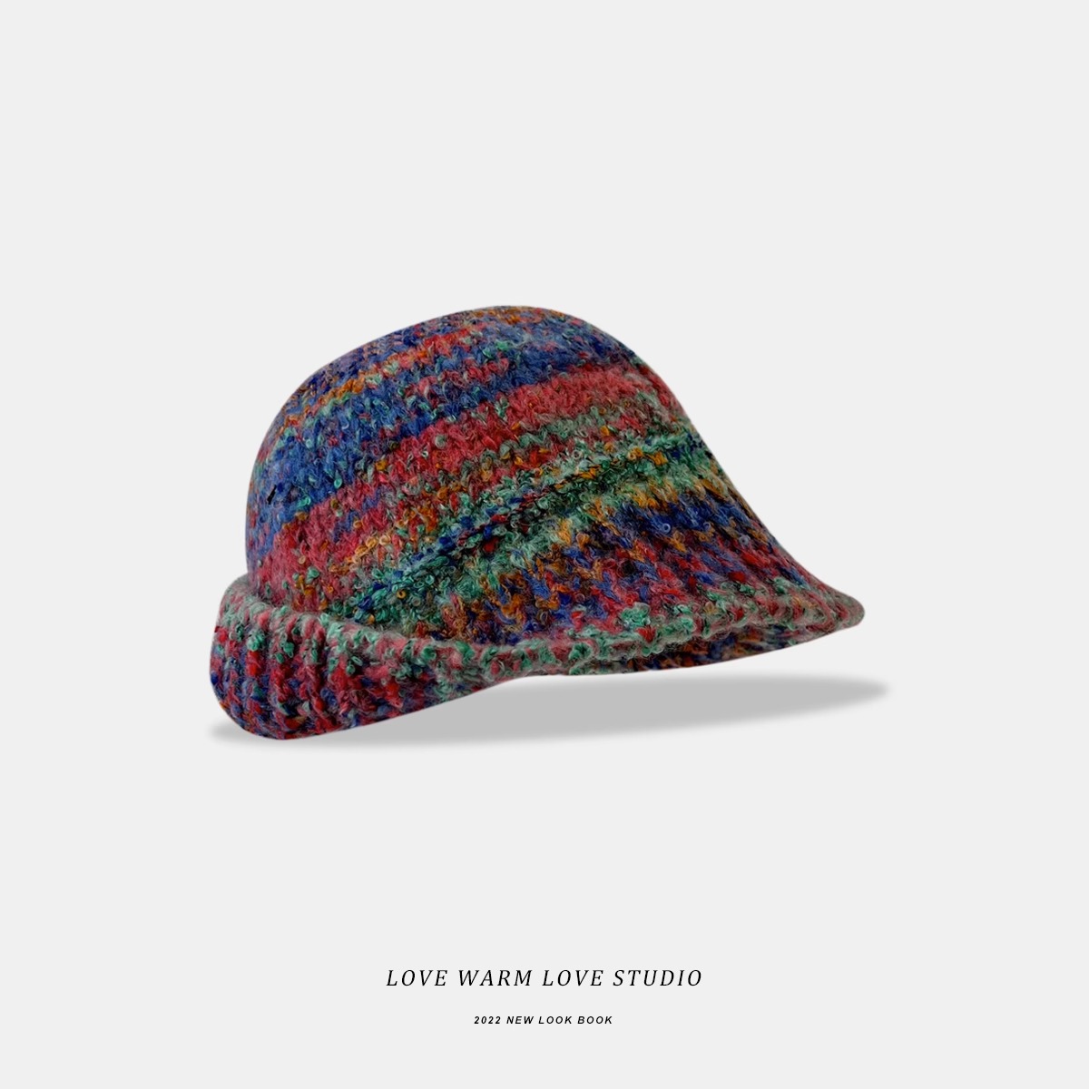 小众设计复古彩色渐变毛线盆帽女秋冬季保暖护耳显脸小针织渔夫帽
