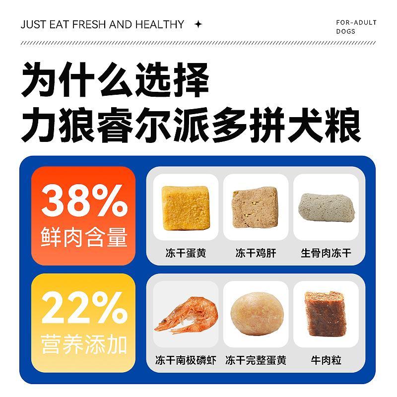 力狼睿尔派狗粮20斤冻干鲜肉金毛萨摩成幼犬通用型犬主粮10kg包邮