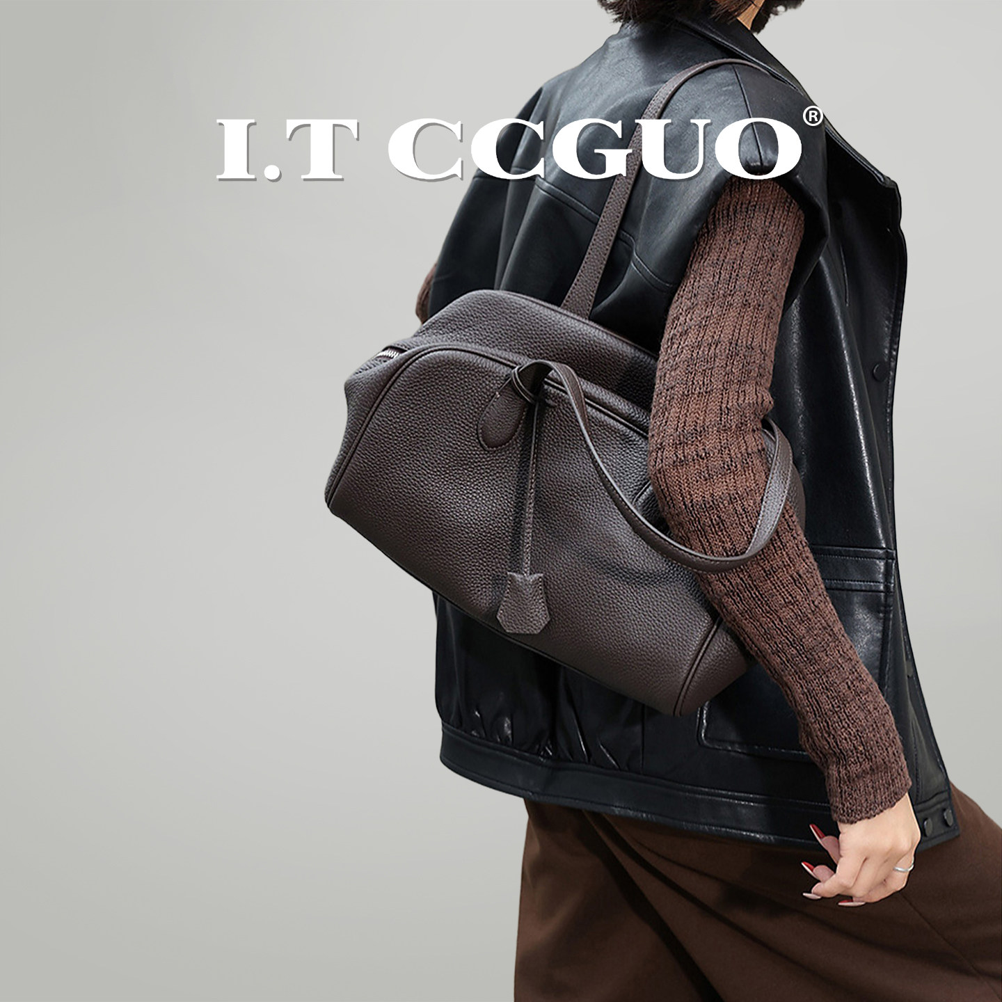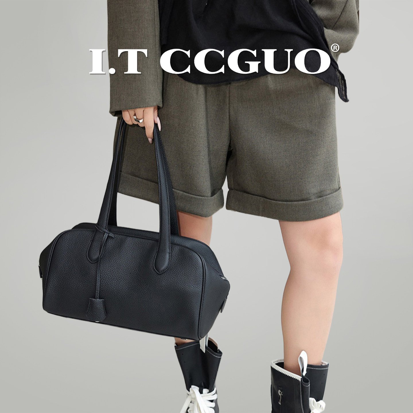 I.TCCGUO头层牛皮腋下包女式单肩包欧美简约真皮女包休闲手提女包
