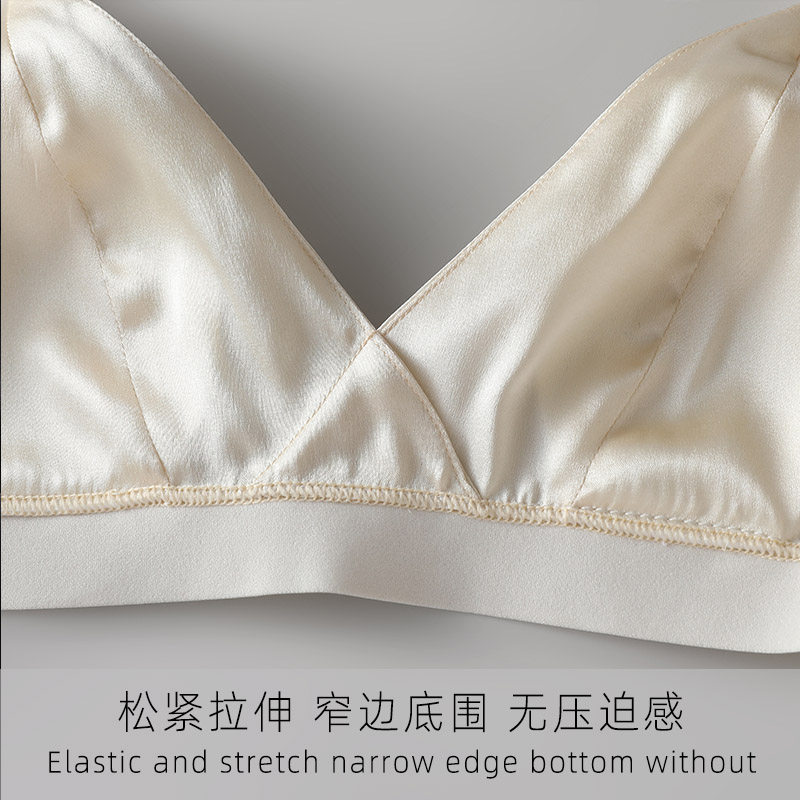 法式真丝缎面三角杯薄款文胸 简约时尚舒适无钢圈桑蚕丝内衣女