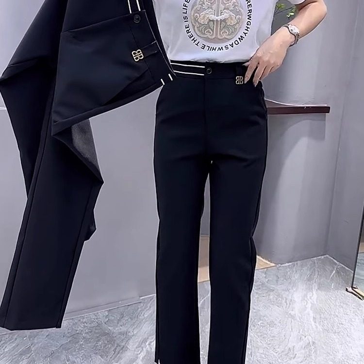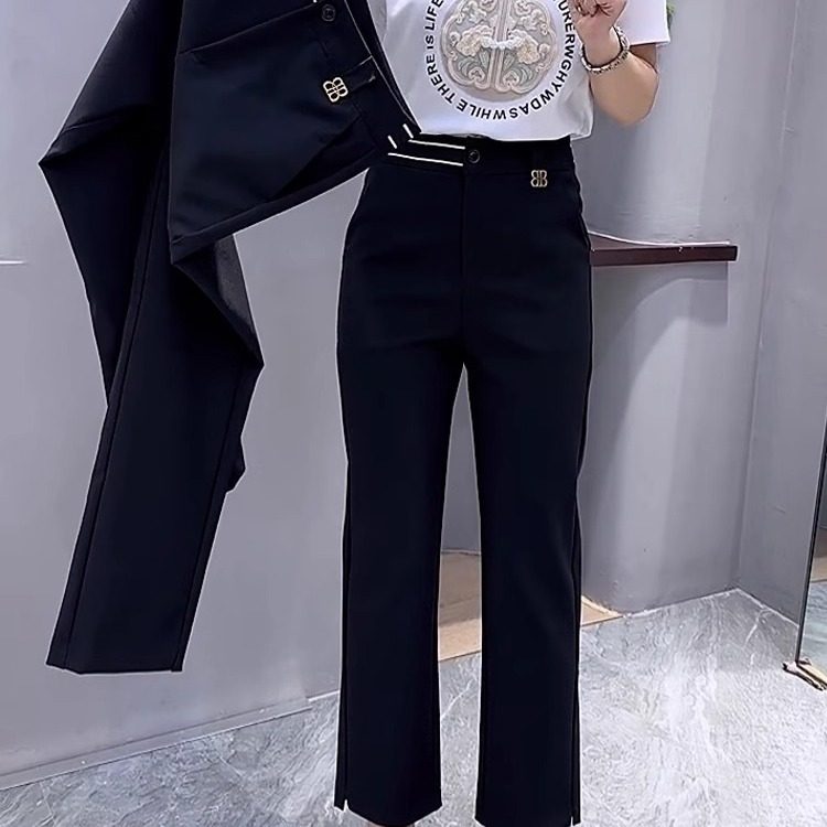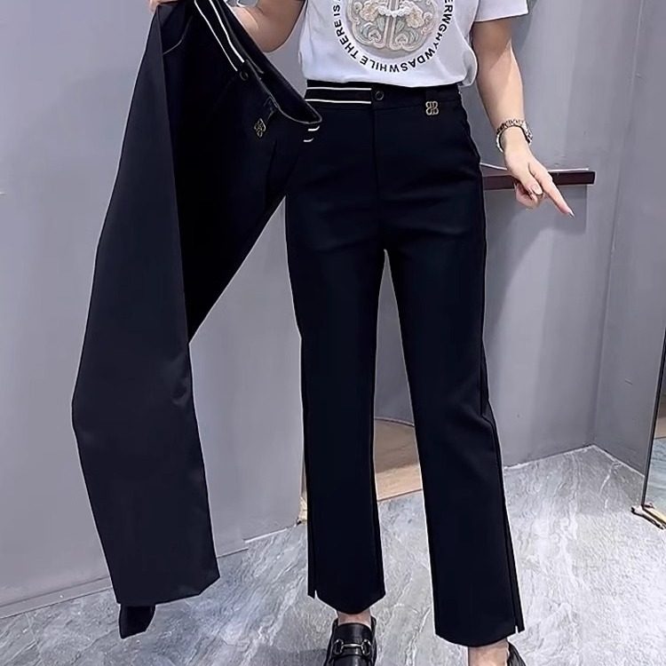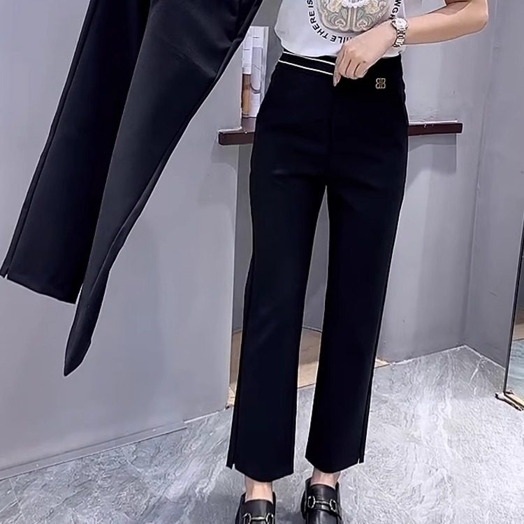 2025秋季新款黑色休闲西裤女大码高腰弹力遮胯显瘦九分直筒烟管裤