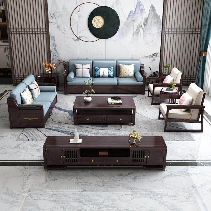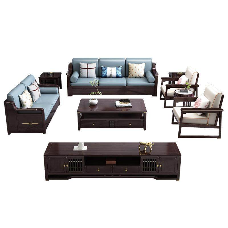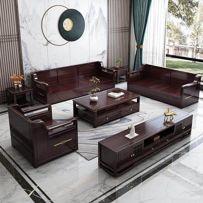 新中式实木沙发组合现代中式客厅大小户型橡胶木转角布艺储物家具