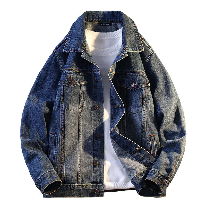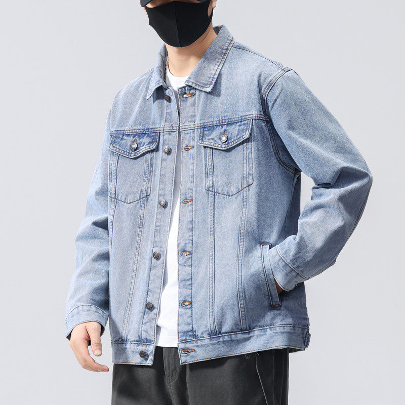 牛仔外套男青少年男装秋冬季潮牌上衣字母印花牛仔衣学生牛仔夹克