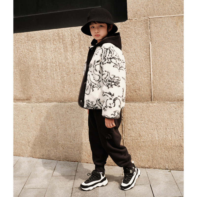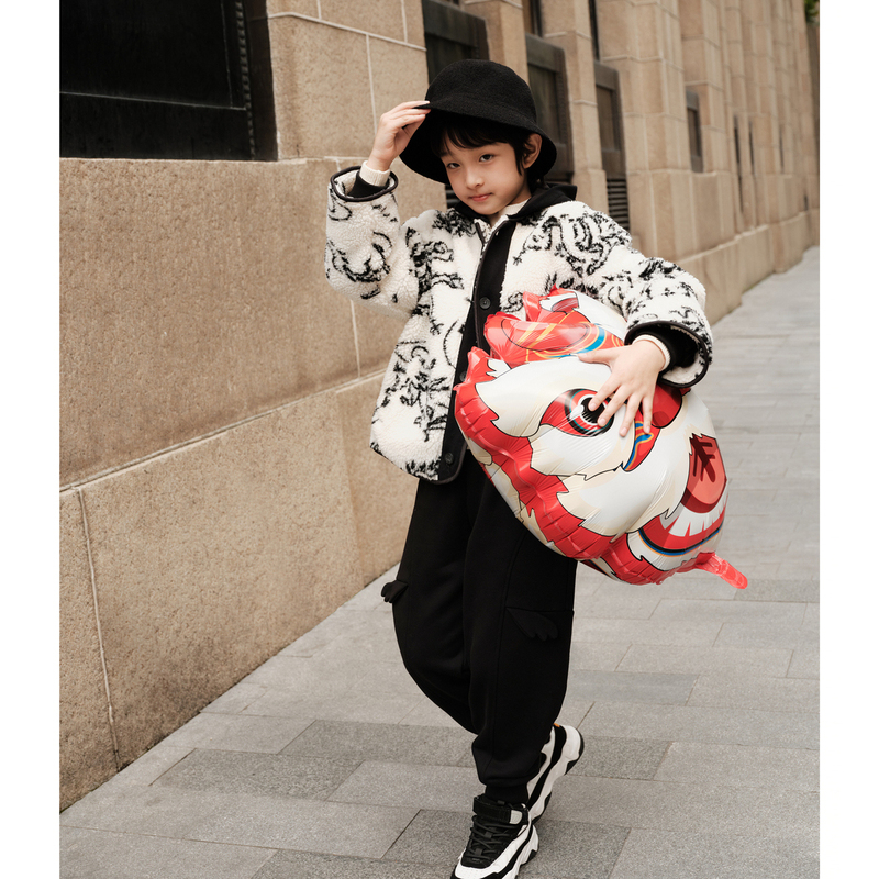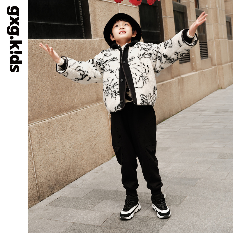 GXG童装春季新品儿童外套中大童拜年龙图案羊羔毛连帽外套