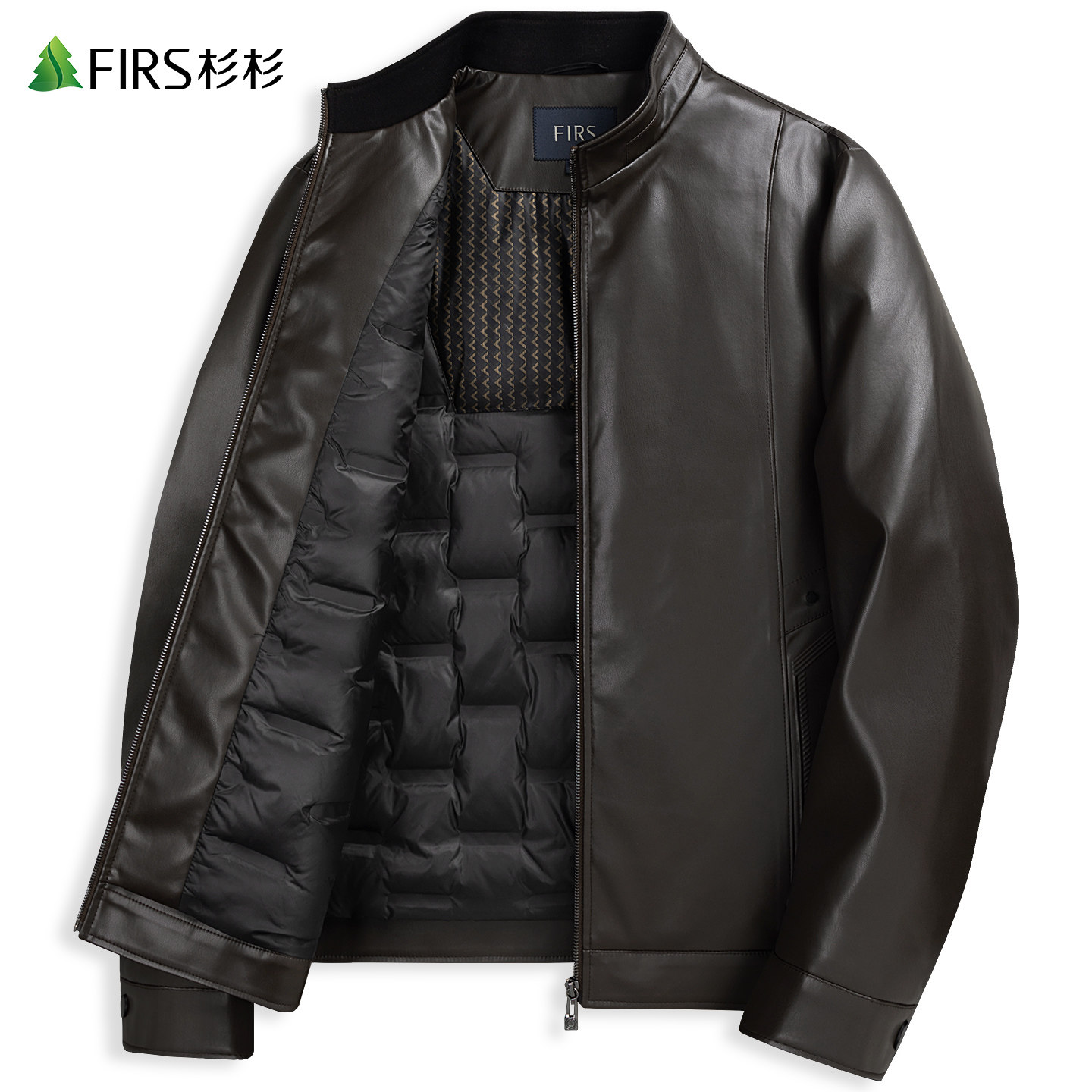 【加厚防风】杉杉立领皮衣羽绒服男2025冬季新款保暖PU皮商务外套