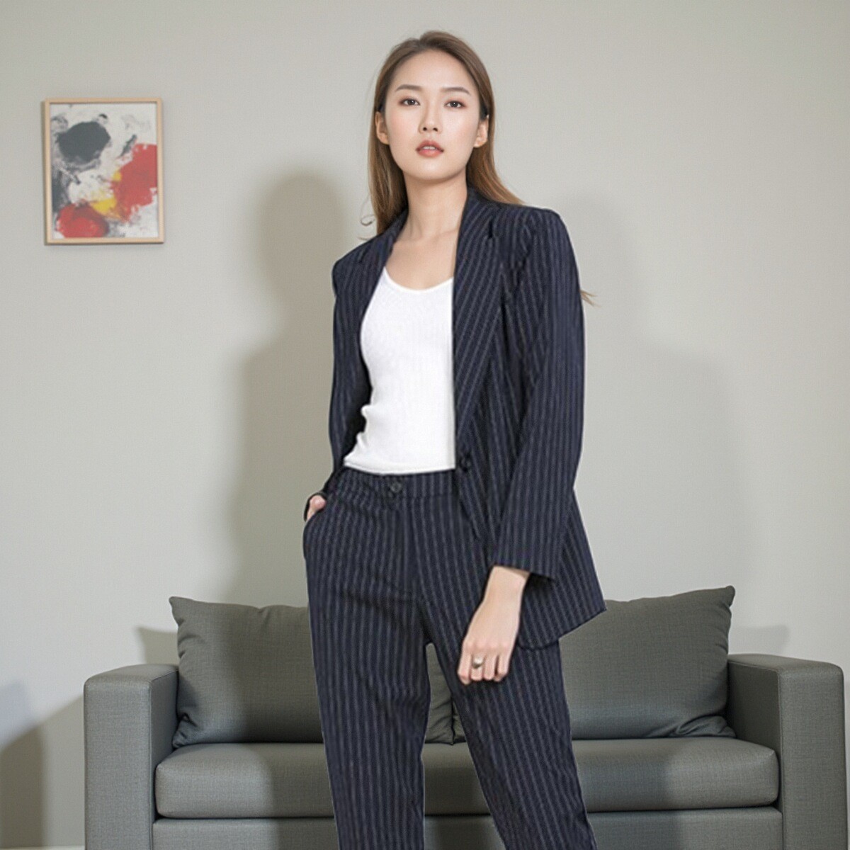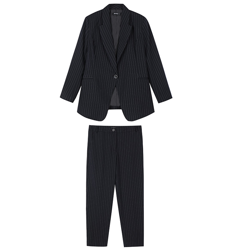 欧货西装套装竖条纹2025年春秋夏休闲外套工作服大码女装职业薄款
