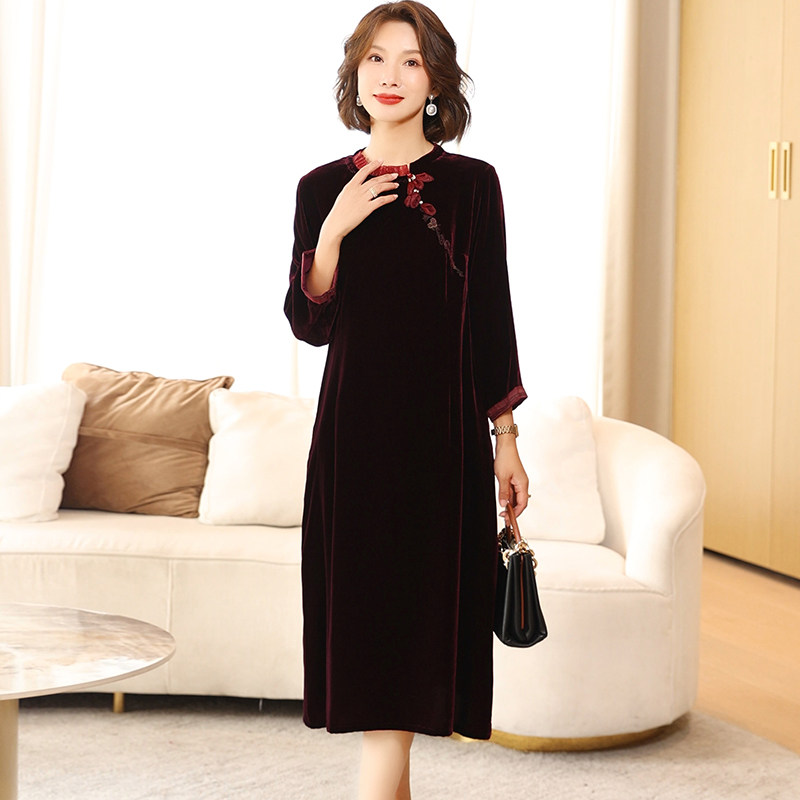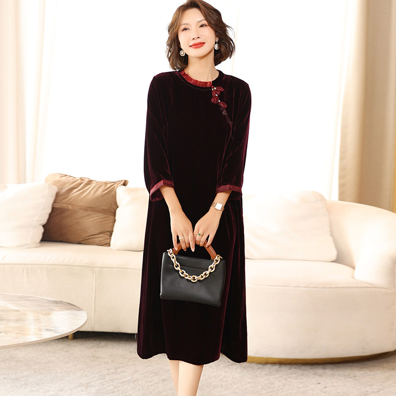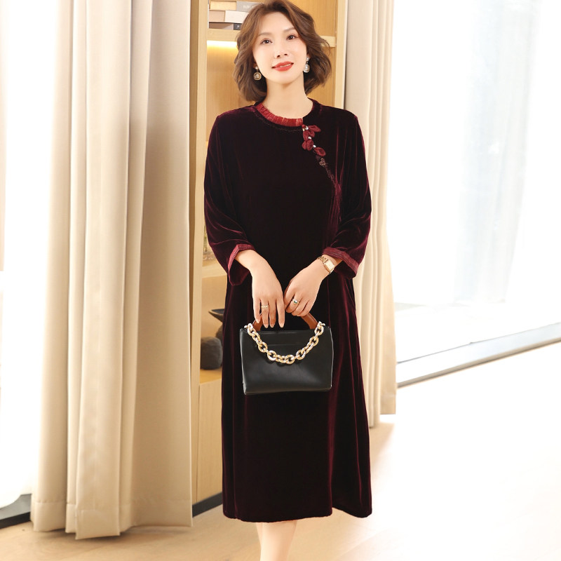 婚宴真丝丝绒连衣裙女喜婆婆桑蚕丝妈妈装新中式改良旗袍气质春秋