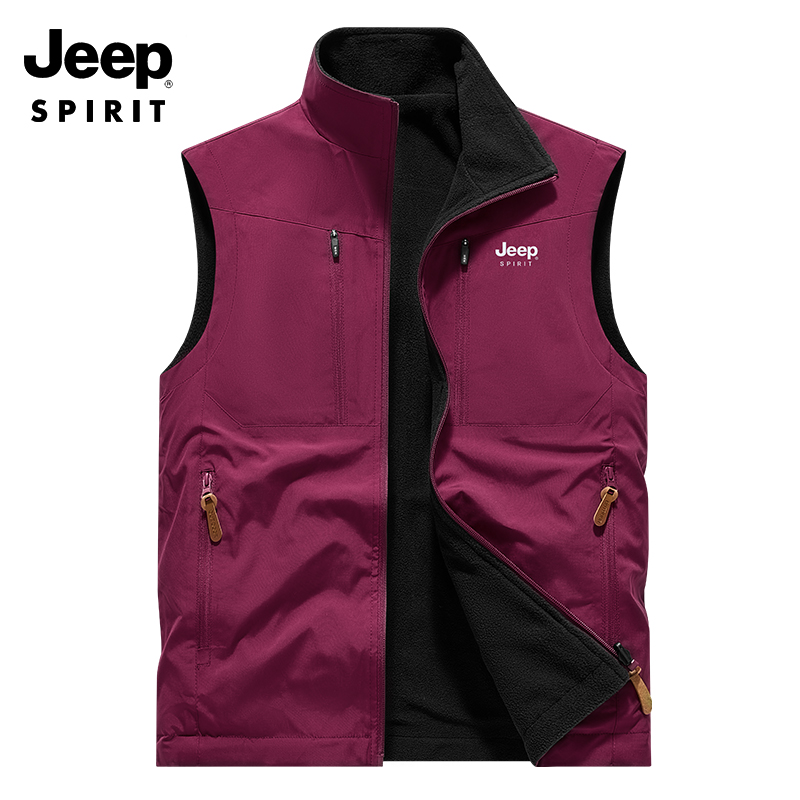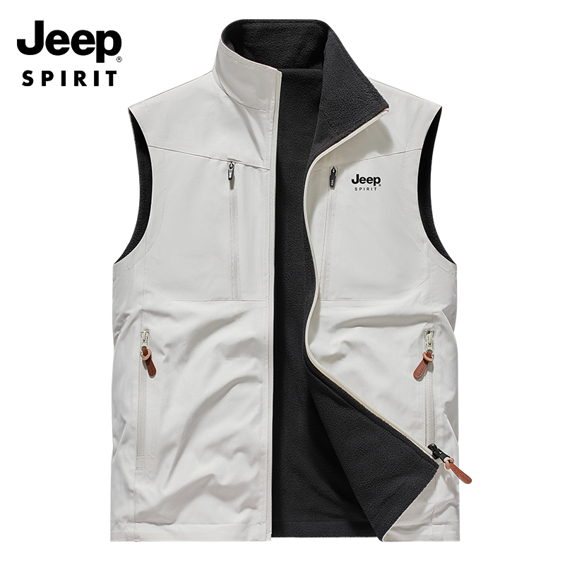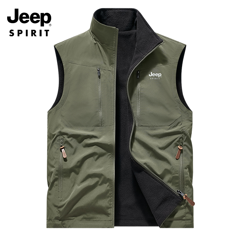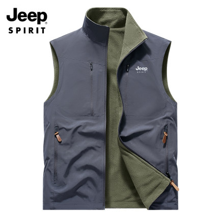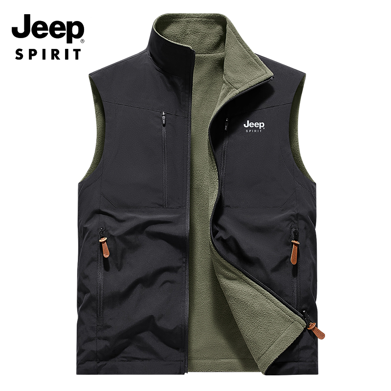 JEEP吉普男士双面穿抓绒马甲2025新款户外休闲多口袋保暖背心马夹
