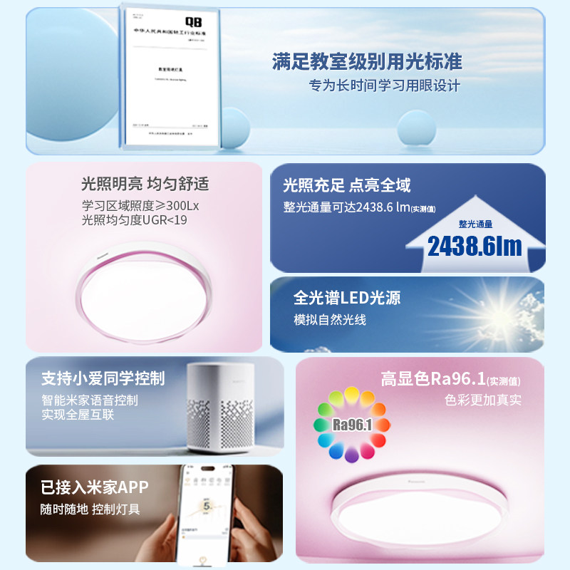 松下LED全光谱吸顶灯儿童房护眼卧室灯具官方正品2025年新款智月