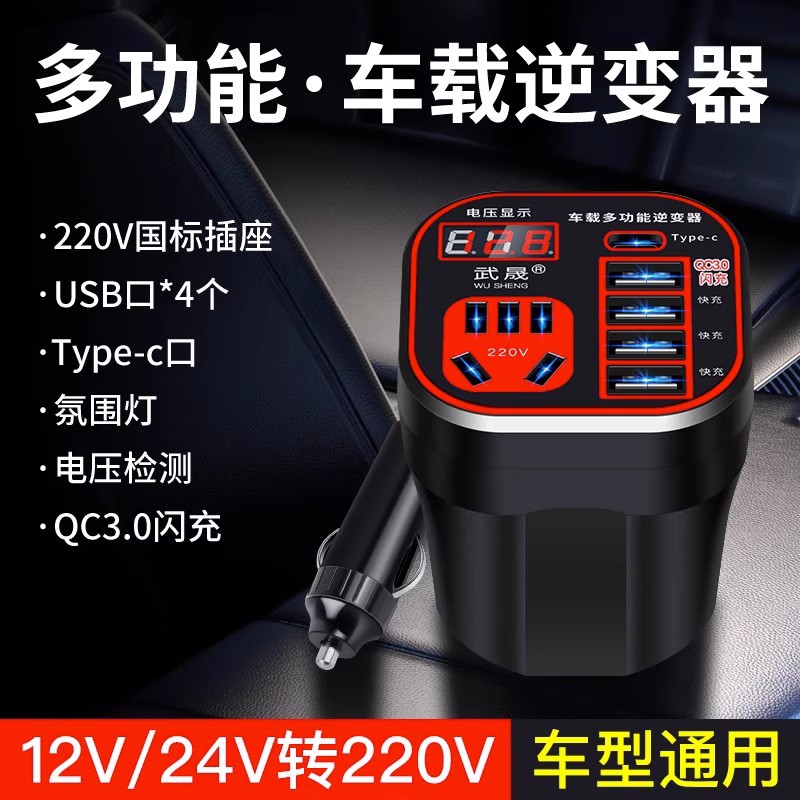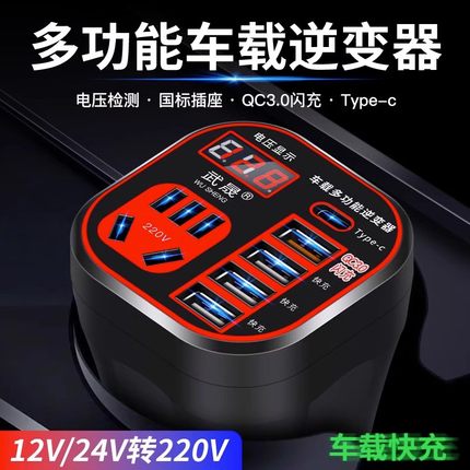 车载逆变器12V/24V转220V多功能插座汽车用电源转换器货车充电器