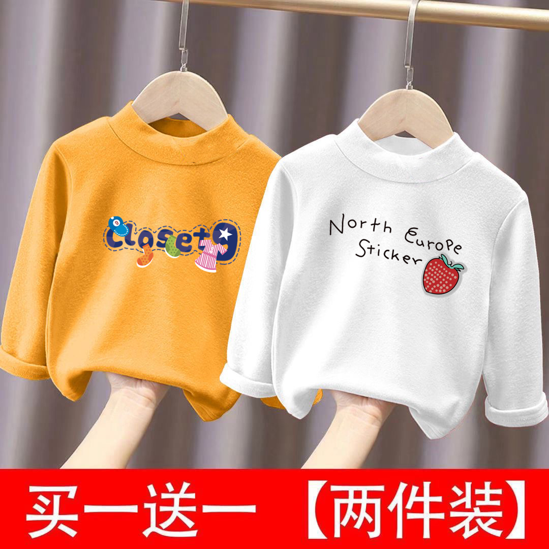 女童德绒半高领打底衫童装儿童宝宝冬装秋冬秋衣加绒长袖T恤上衣