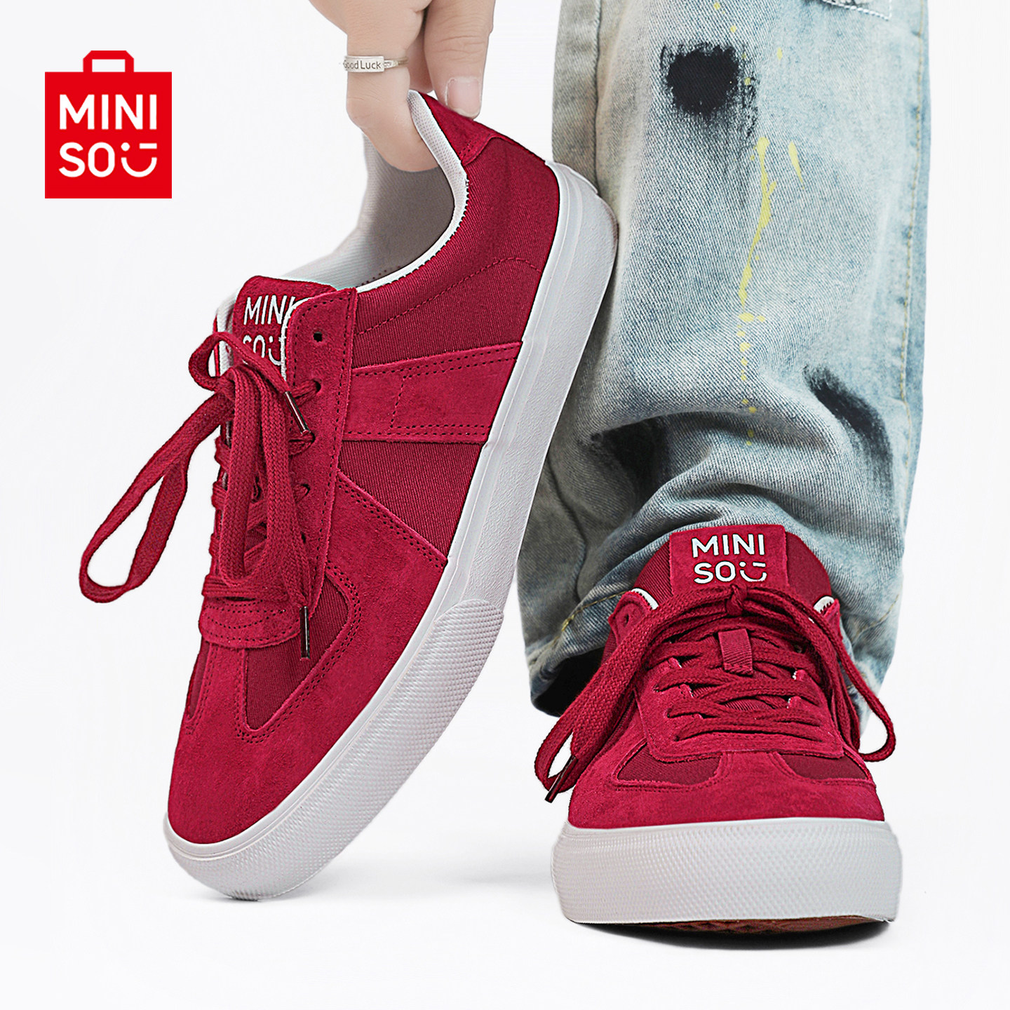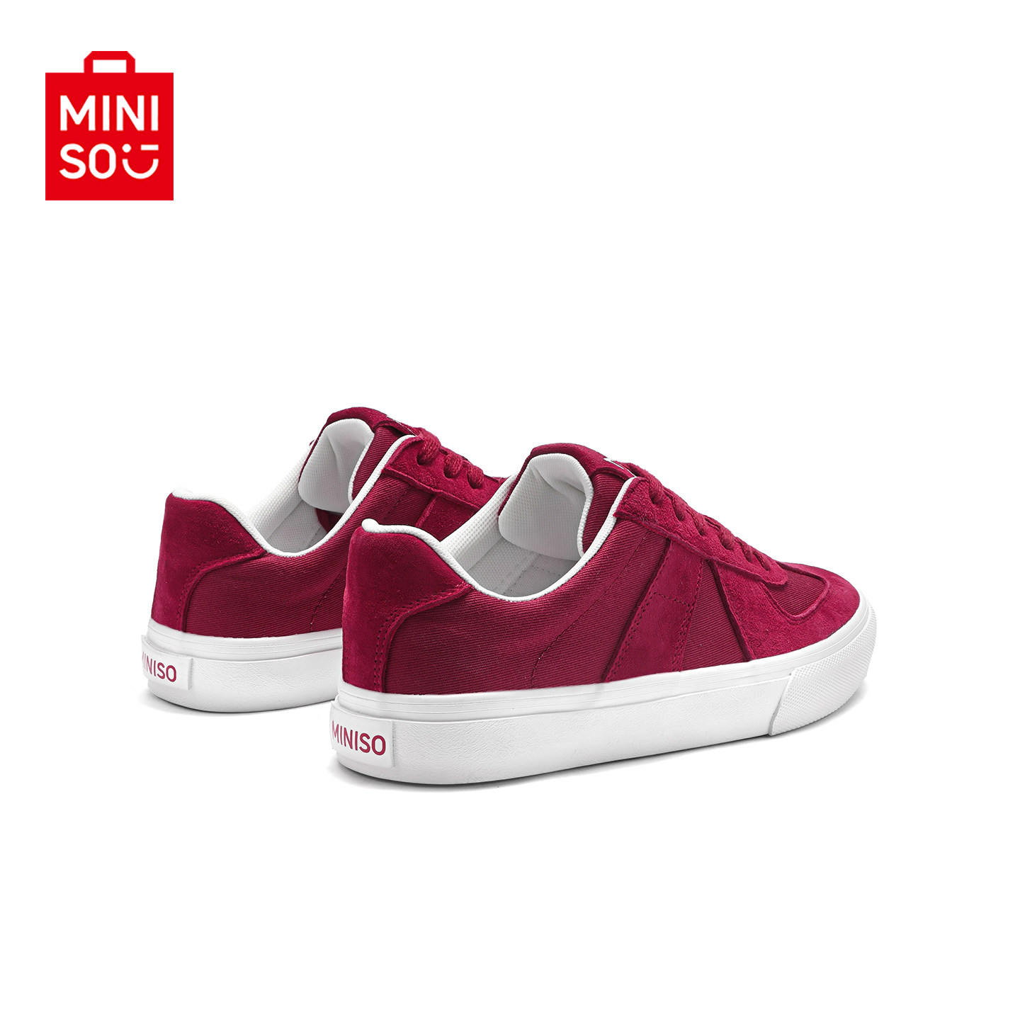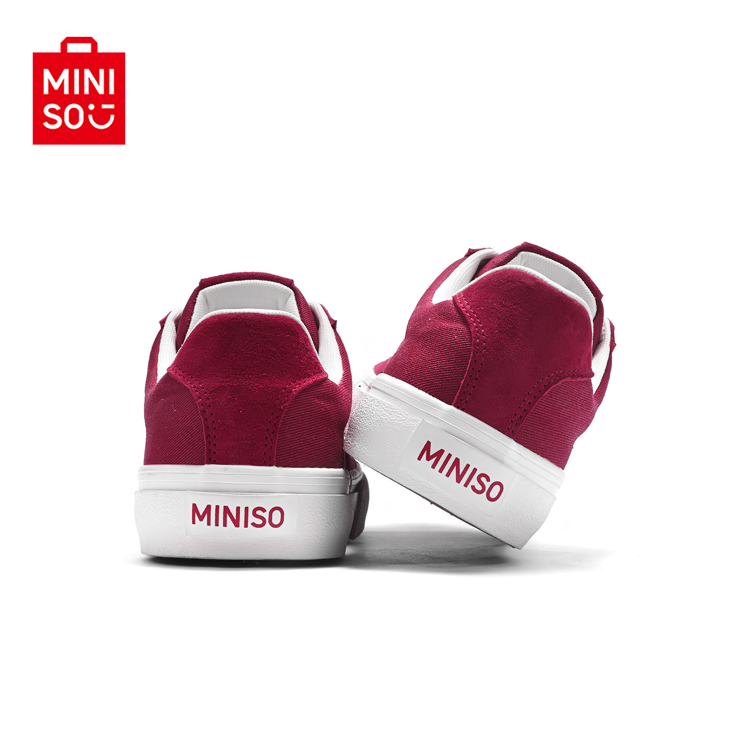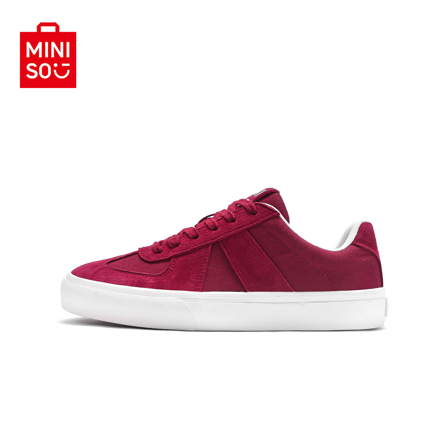 MINISO/名创优品鞋子男翻毛皮酒红运动滑板鞋情侣防滑耐磨帆布鞋