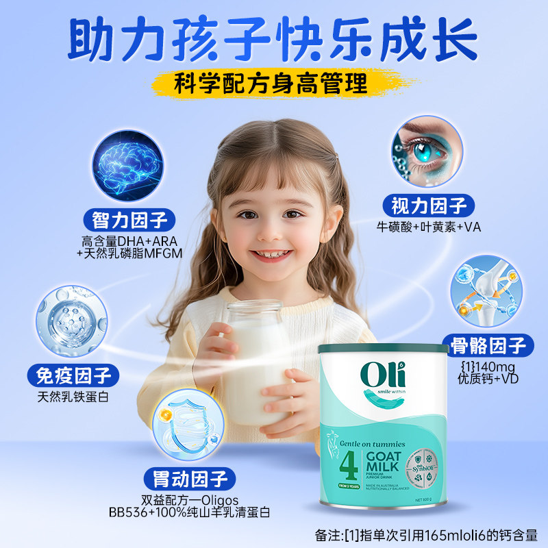 Oli6儿童成长奶粉3岁以上助力高6进口羊奶粉学生四段青少年旗舰店