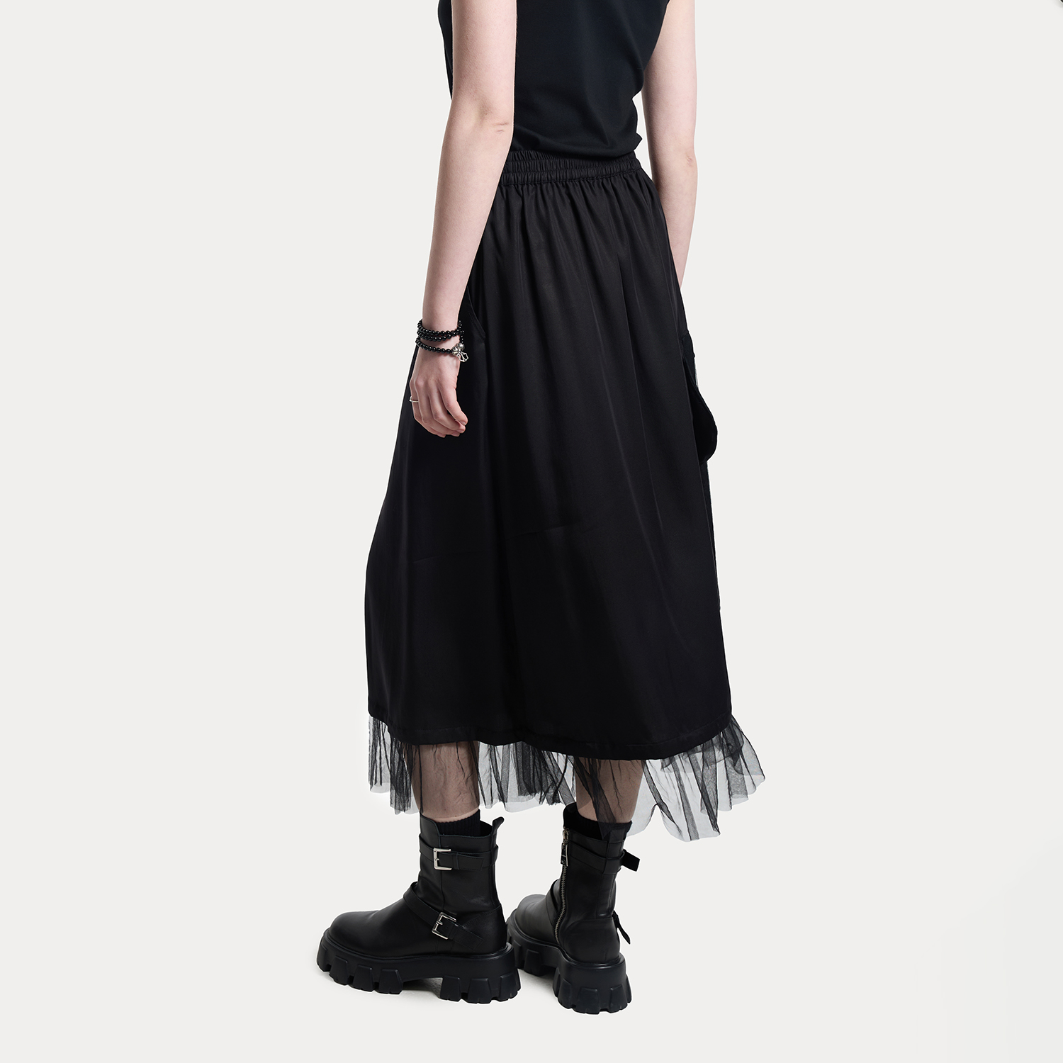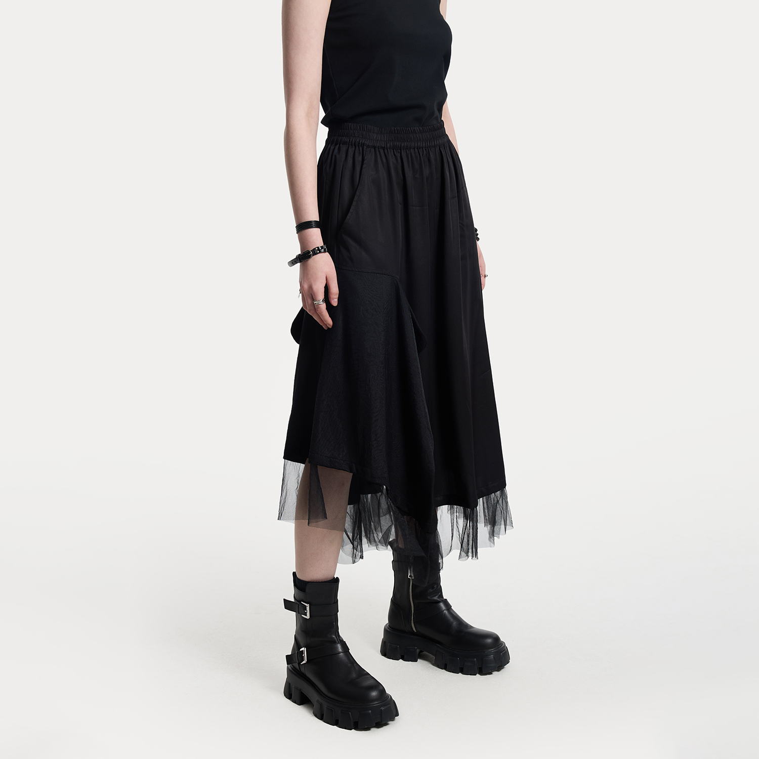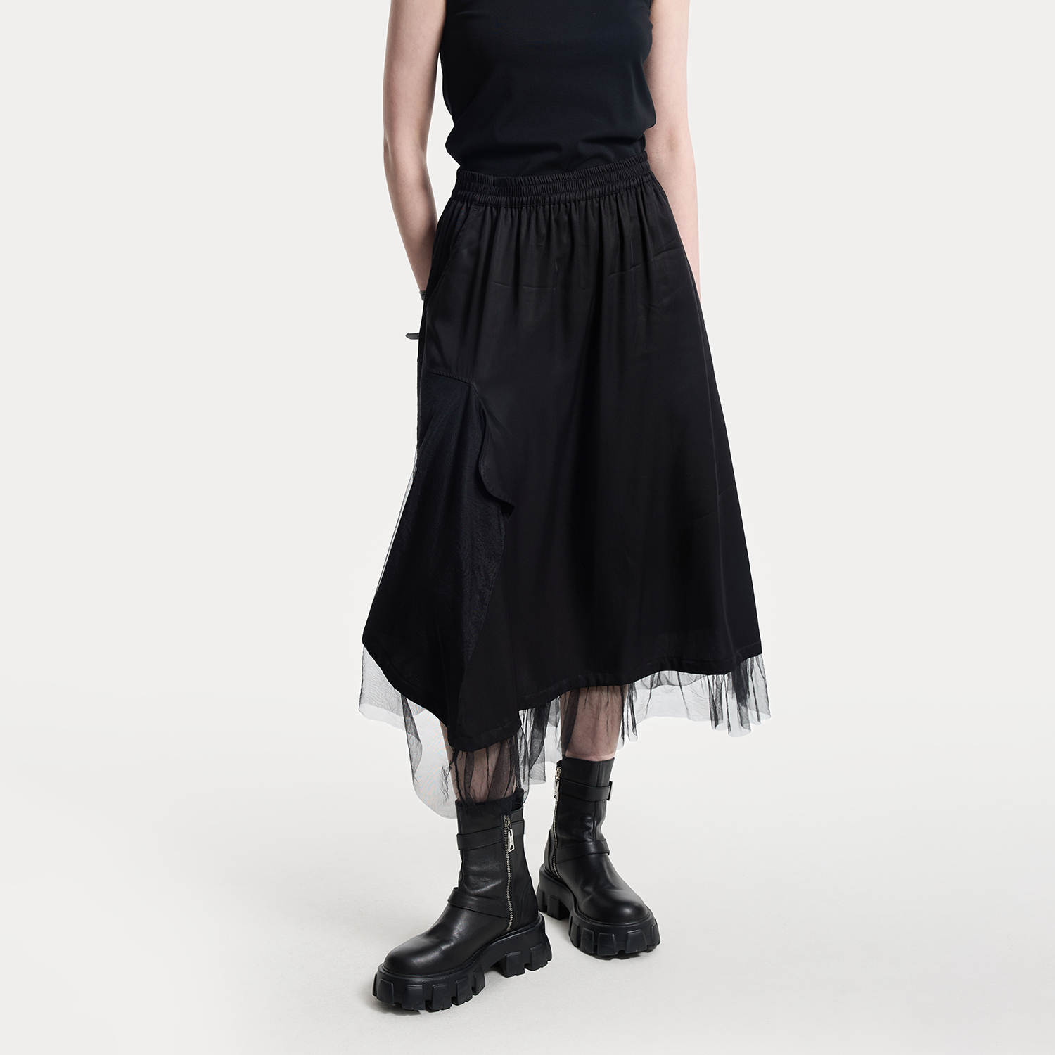 odbo/欧迪比欧原创设计半身中长裙2025春夏新款半截裙子简约网纱