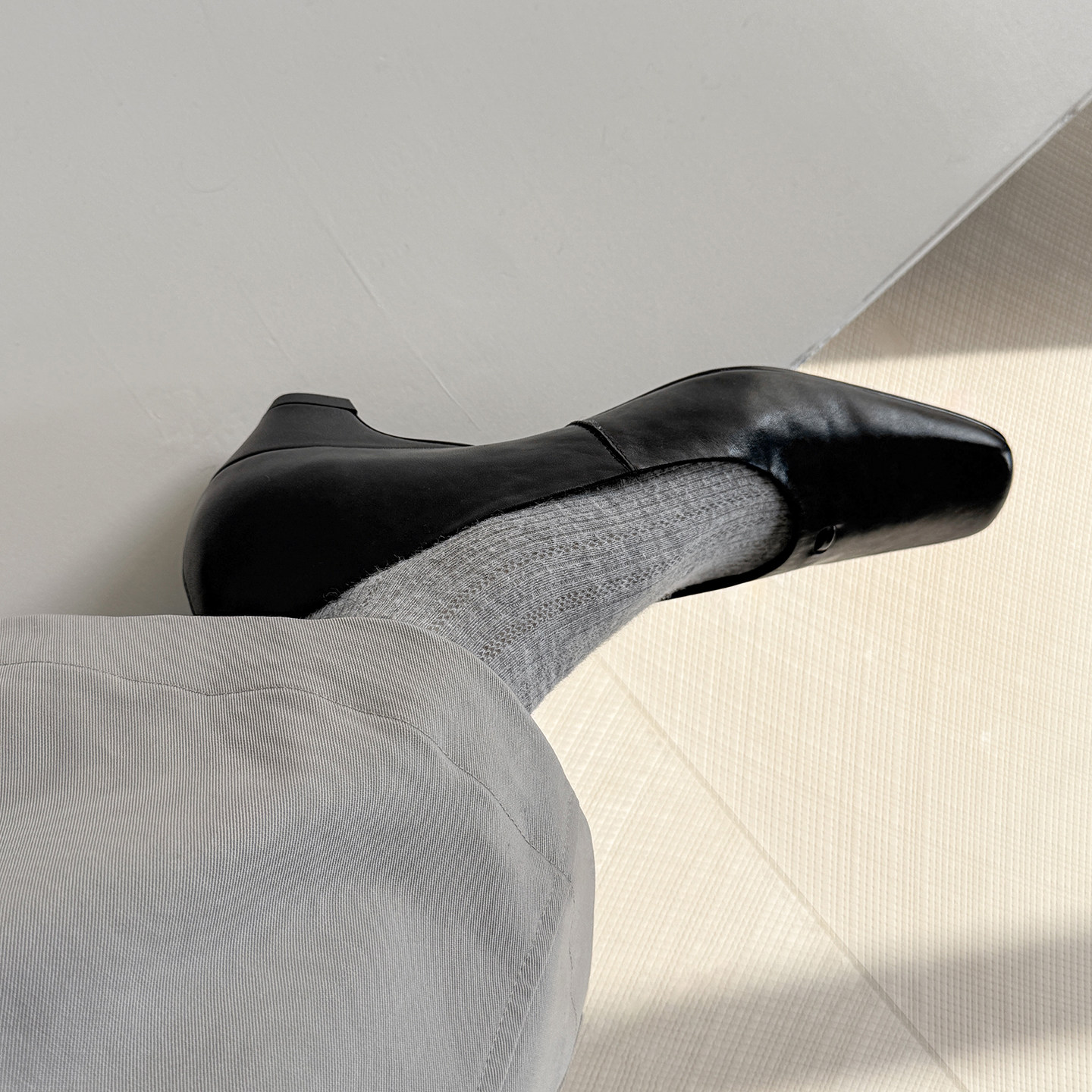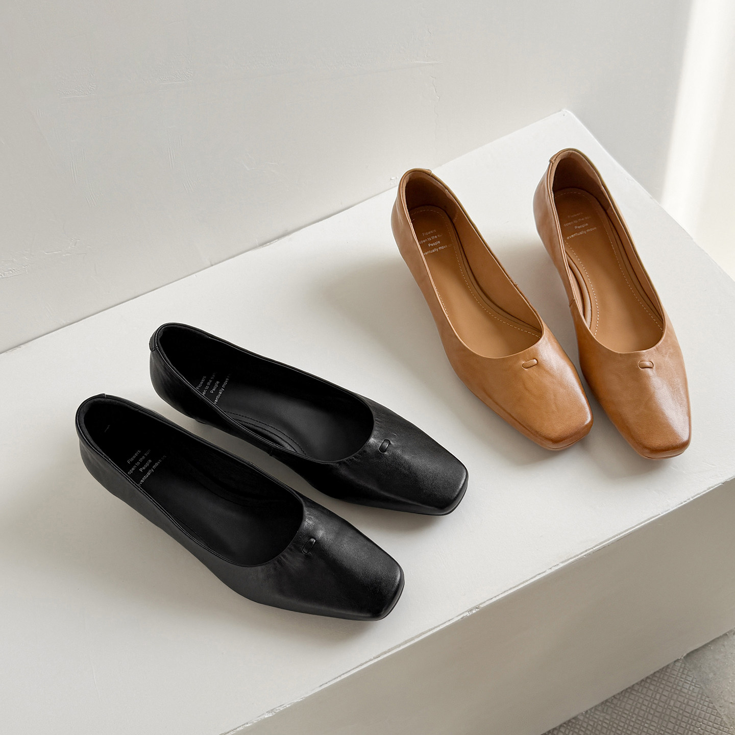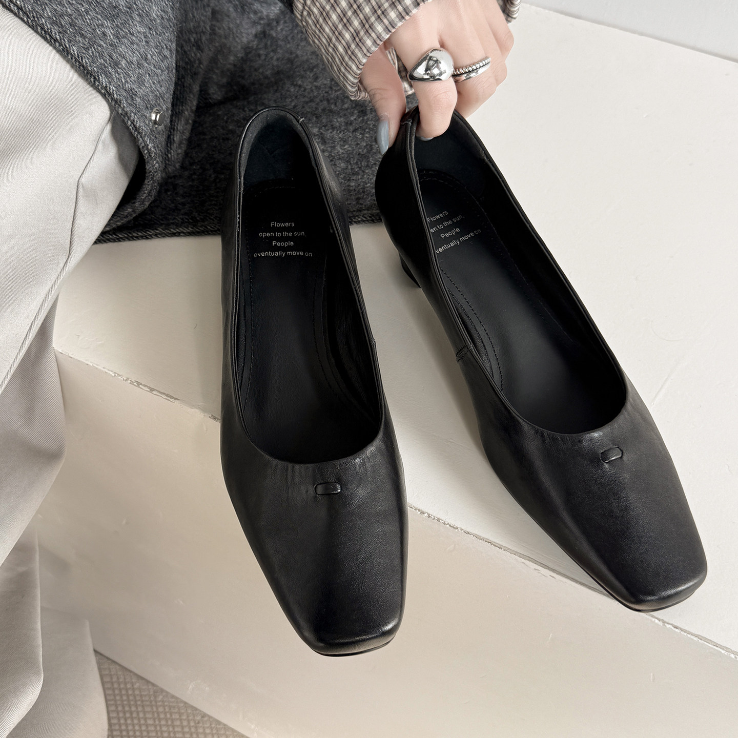 真皮复古方头粗跟浅口单鞋女通勤头层牛皮中跟软底气质坡跟高跟鞋