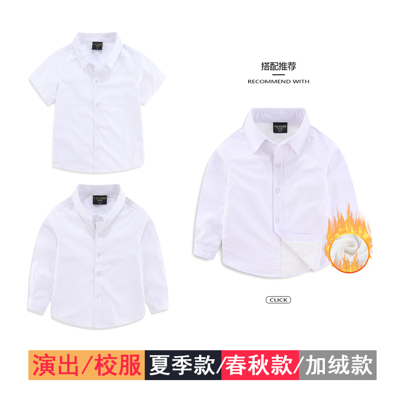 儿童白衬衫男童白衬衣长袖纯棉春秋小学生校服中大童女童JK演出服