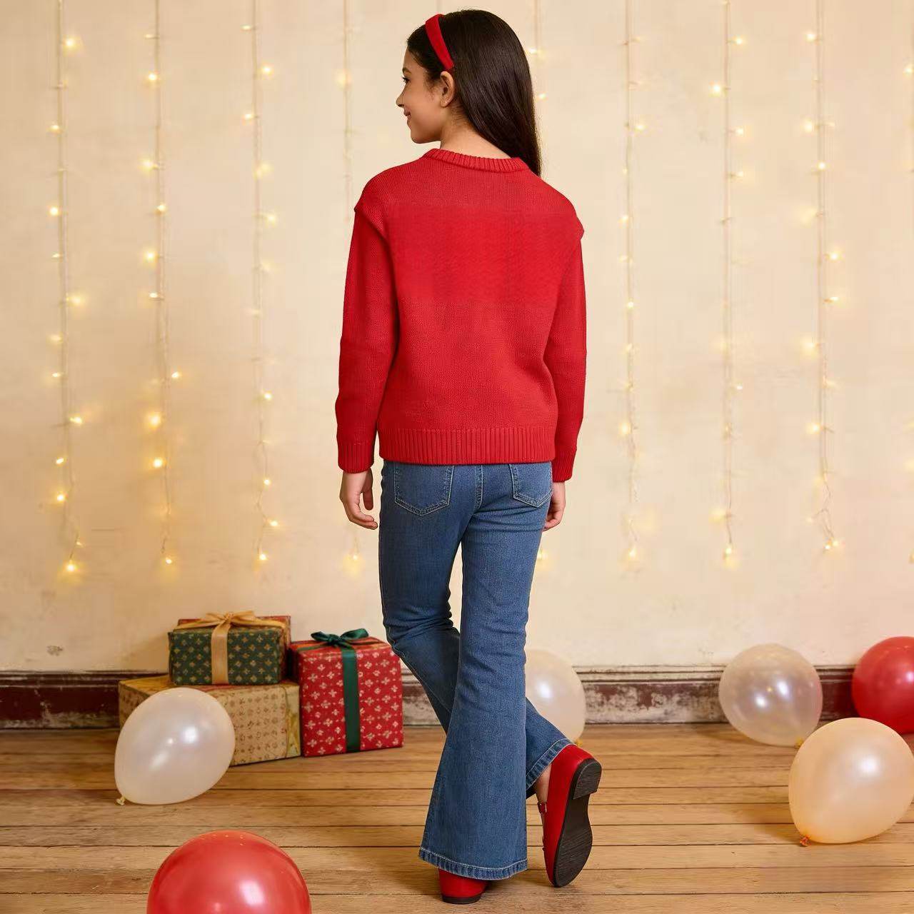外贸出口欧美女童儿童春秋圣诞新年薄款毛衣针织衫