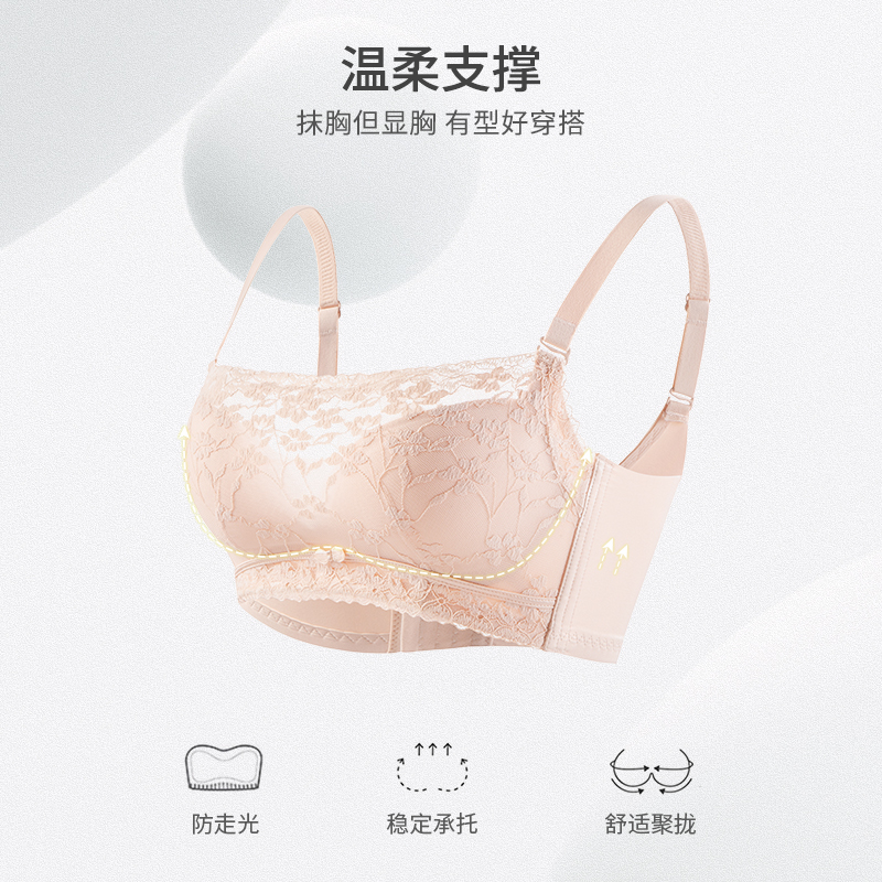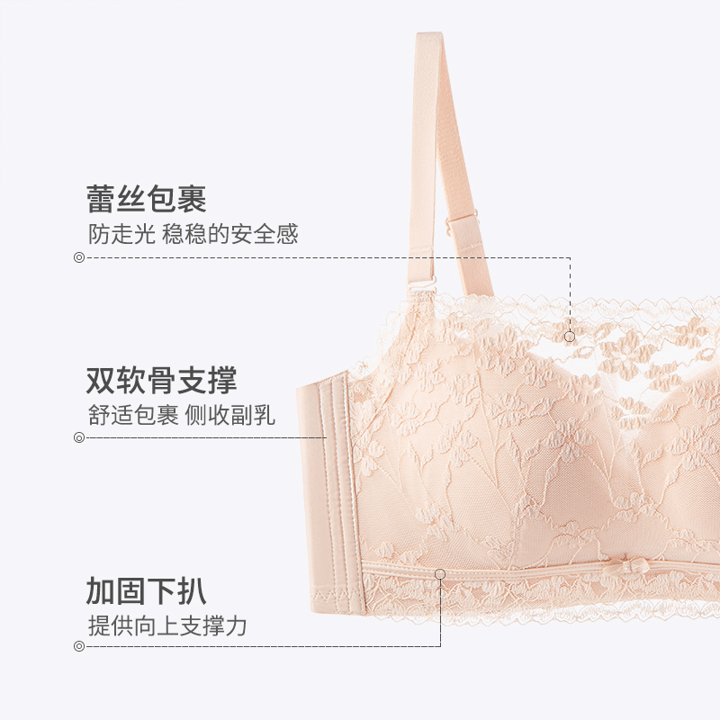 熳洁儿女士内衣小胸聚拢抹胸防走光胸罩精美蕾丝无痕舒适文胸