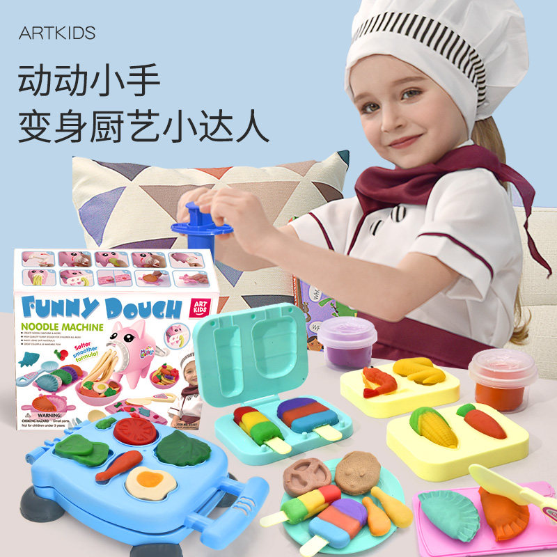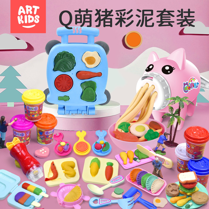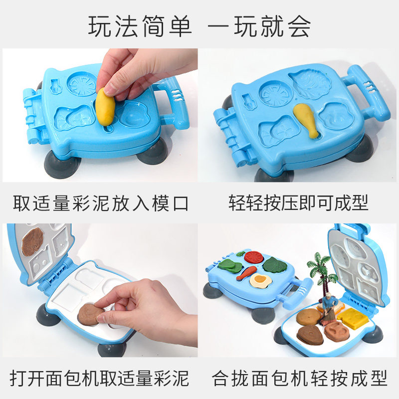 艺启乐小麦彩泥面包机儿童3D橡皮泥超轻粘土男孩女孩益智玩具套装
