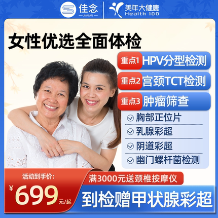 美年大健康女性全面体检套餐卡女士妇科宫颈TCT筛查阴道乳腺彩超