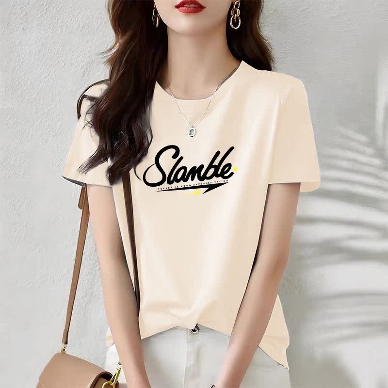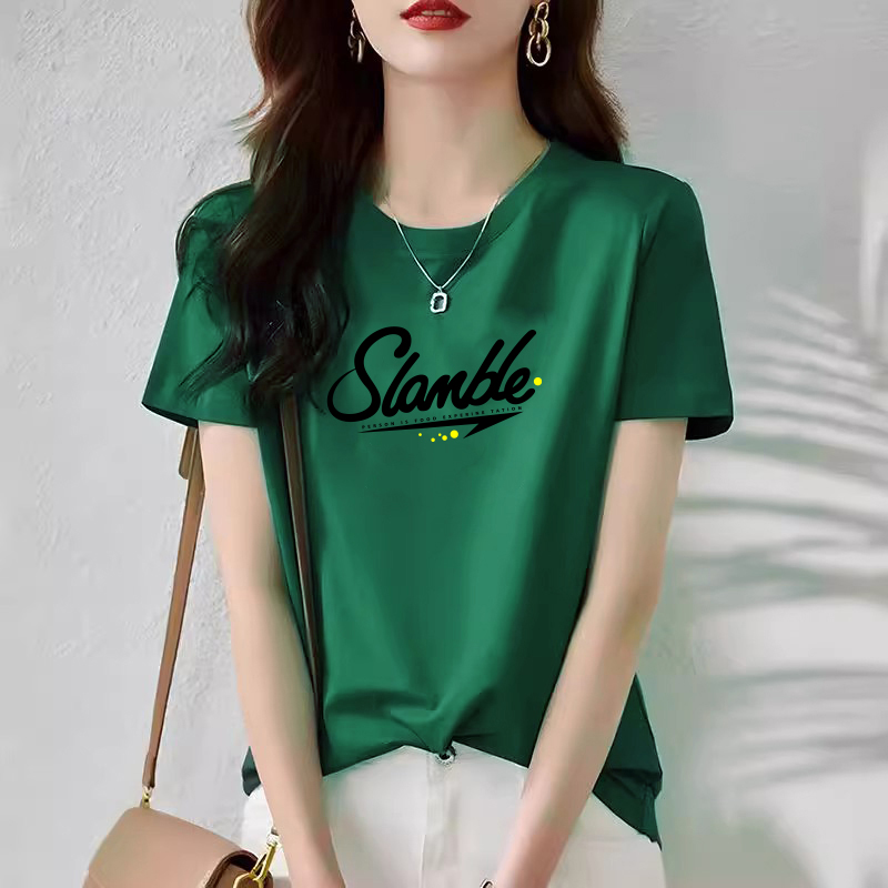 国际大牌高端外贸纯棉短袖t恤女流行气质字母印花玫红百搭上衣潮