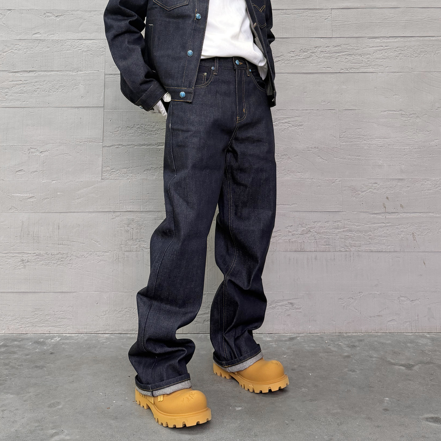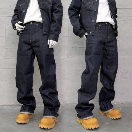 美式街头百搭蓝色原牛宽松牛仔裤