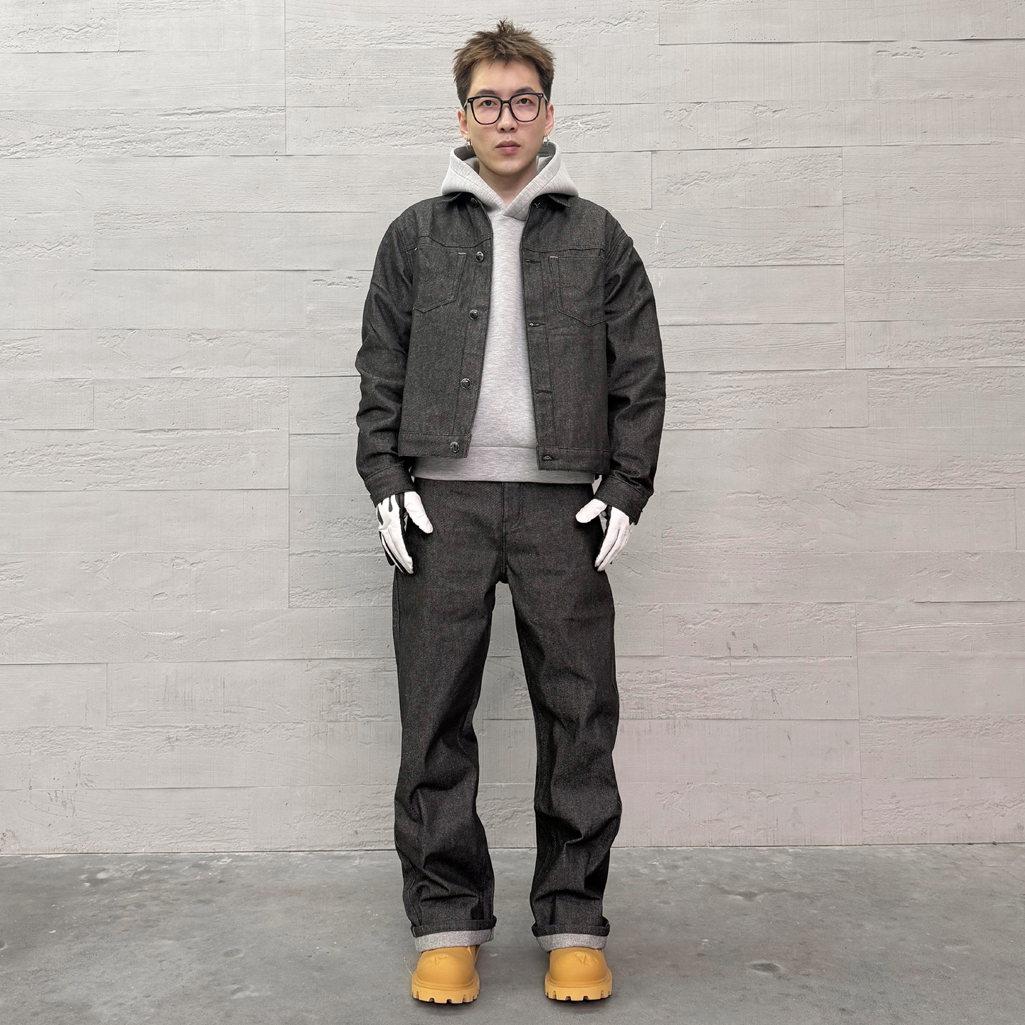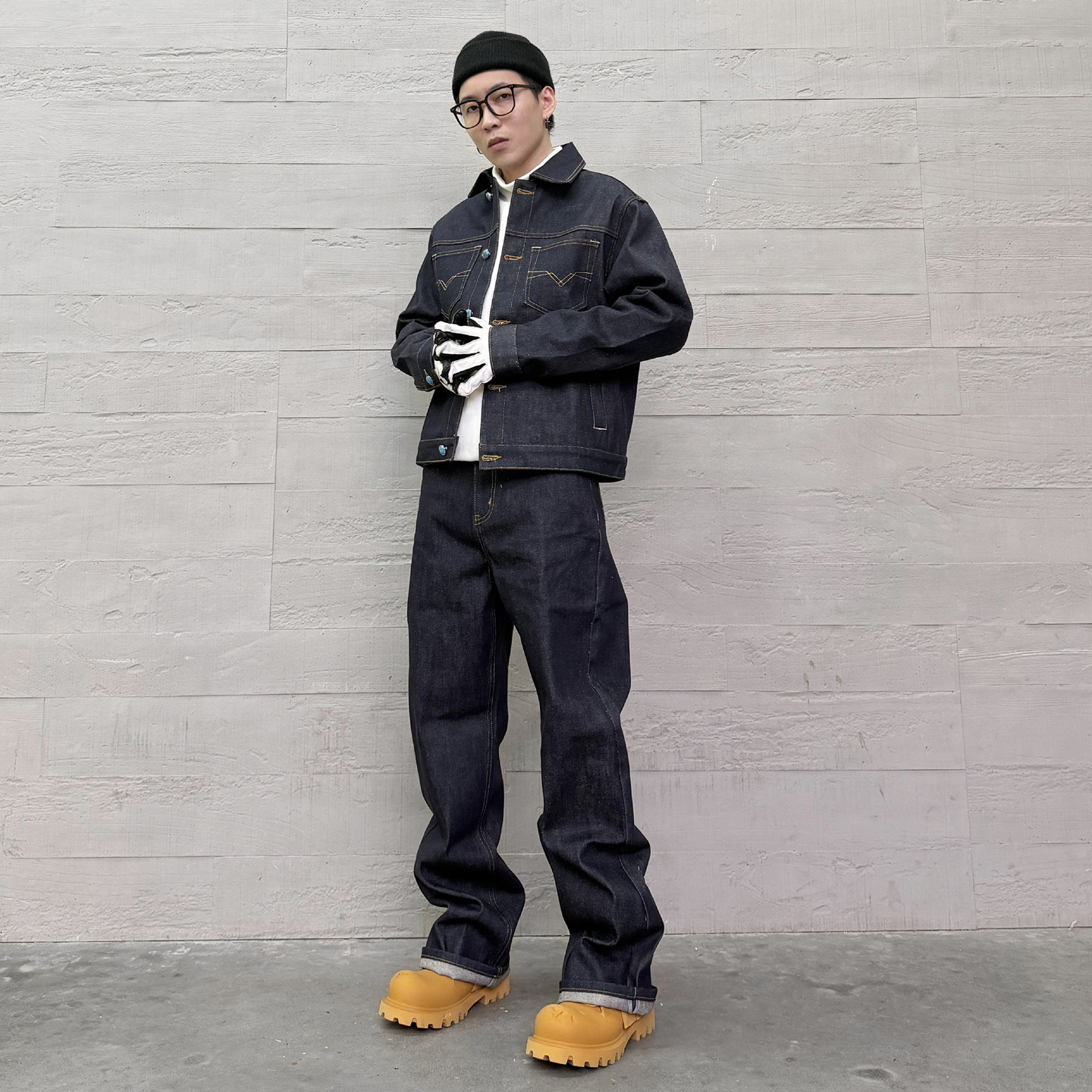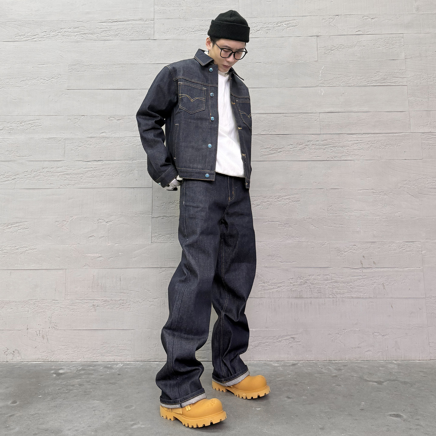 KISSNATE潮牌原色丹宁原牛定制绿松石休闲直筒工装男女宽松牛仔裤