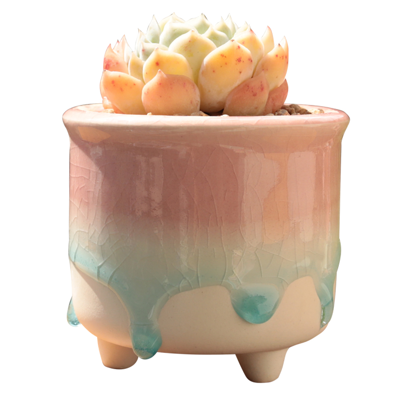 清新多肉植物花盆简约冰裂纹流釉创意小花盆可爱韩式PP肉肉盆特价