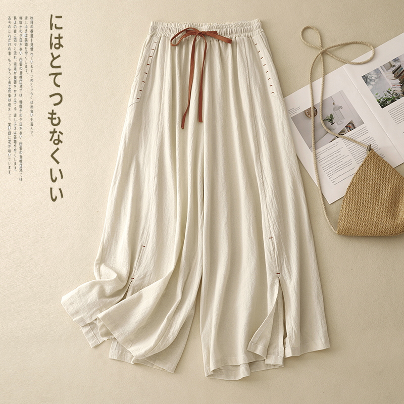 夏季新款文艺棉麻宽松大摆裙裤休闲九分亚麻阔腿裤显瘦显腿直裤子