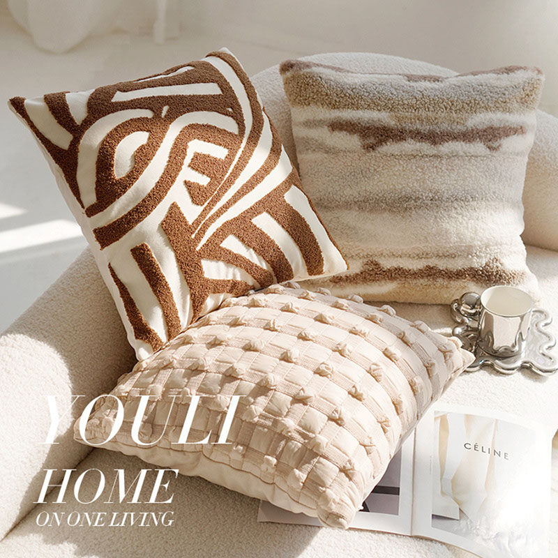 奶油色抱枕高级风打结抱枕套沙发床上棕色床上腰靠枕靠垫枕XM-022
