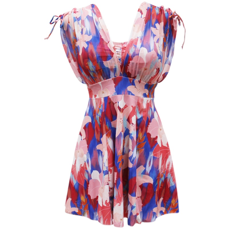 裙式分体性感蕾丝大码游泳衣女遮肚钢托大小胸聚拢温泉服保守遮肚