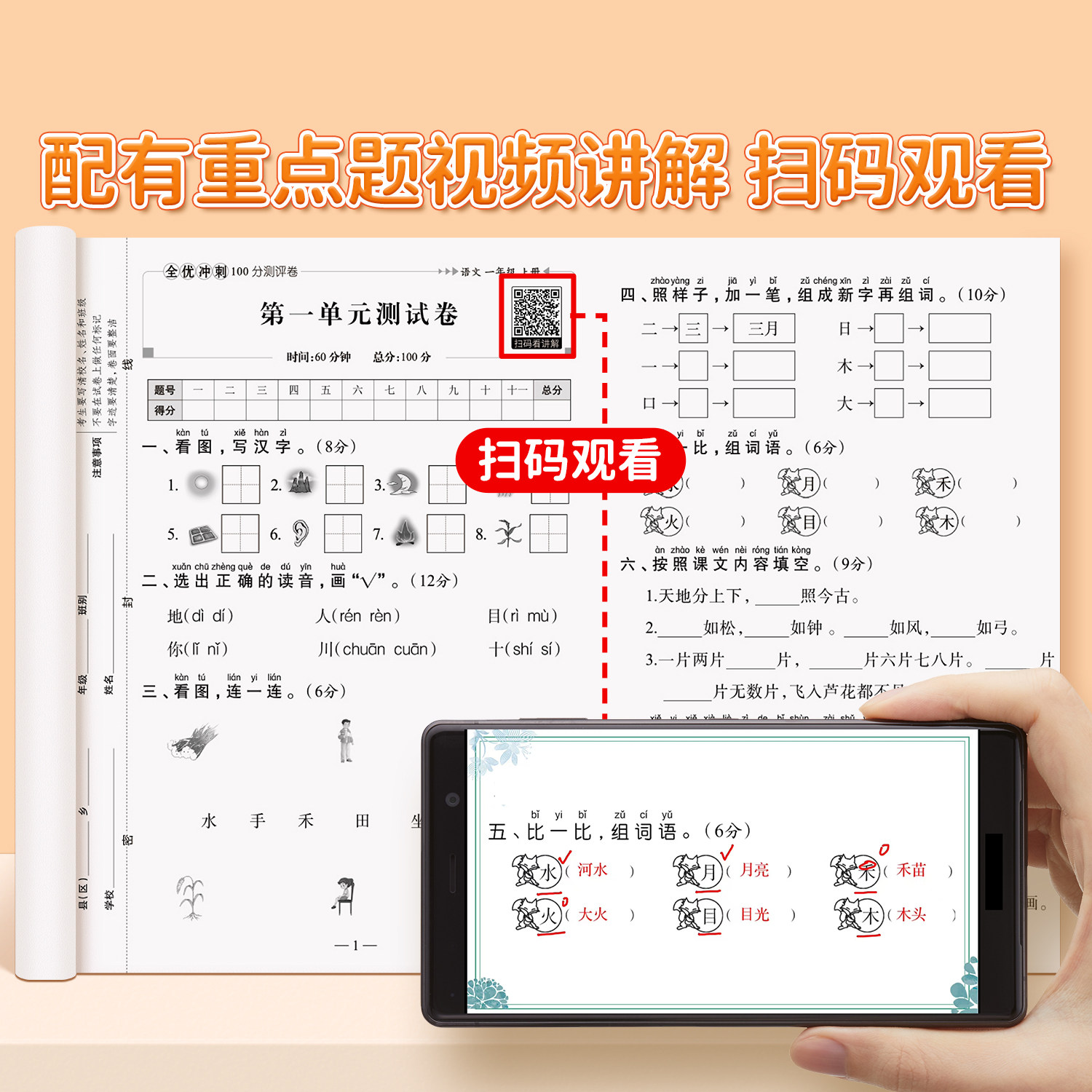 一年级上下册语文数学英语试卷二三四五六年级测试卷全套同步练习册练习题人教版单元考试综合卷子期中期末冲刺一百分小学真题卷