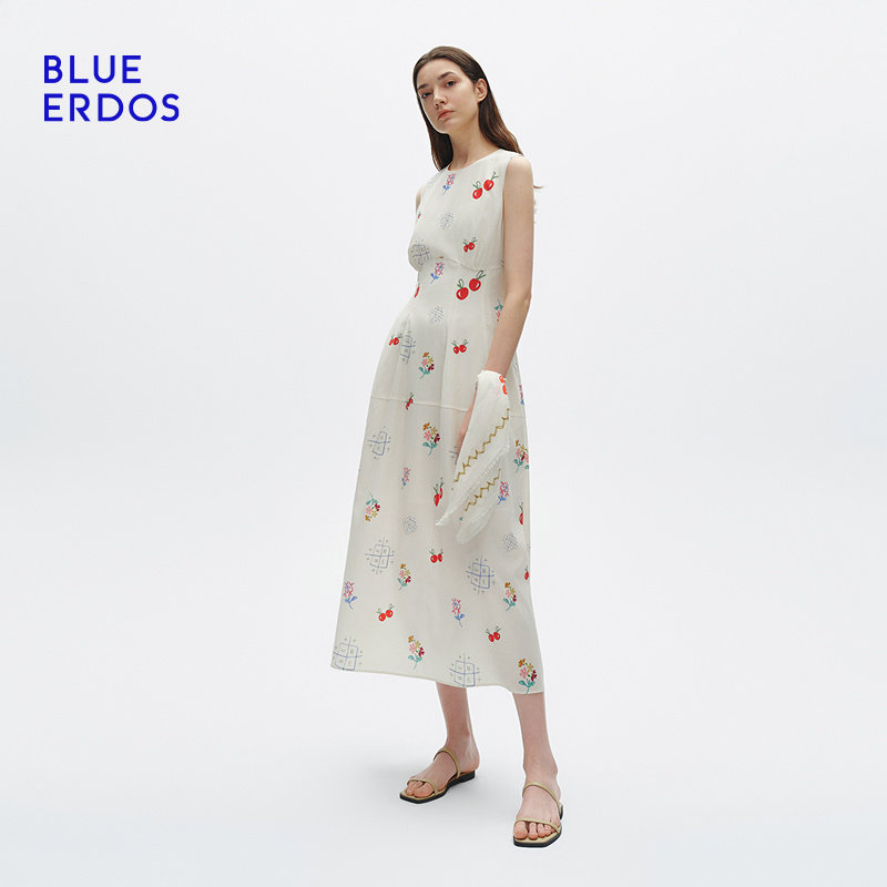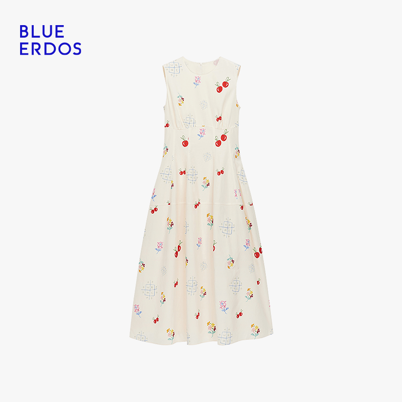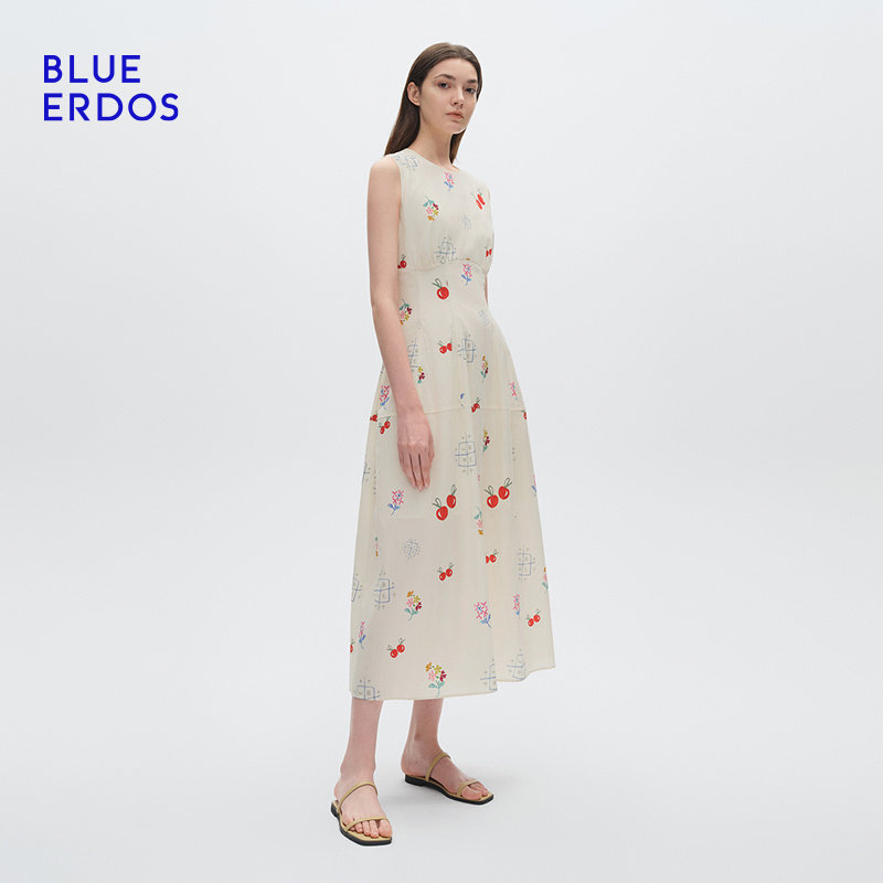 BLUE ERDOS春秋气质樱桃印花无袖背心连衣裙B255I4026