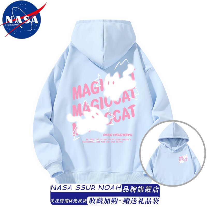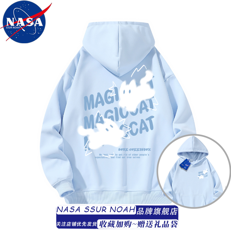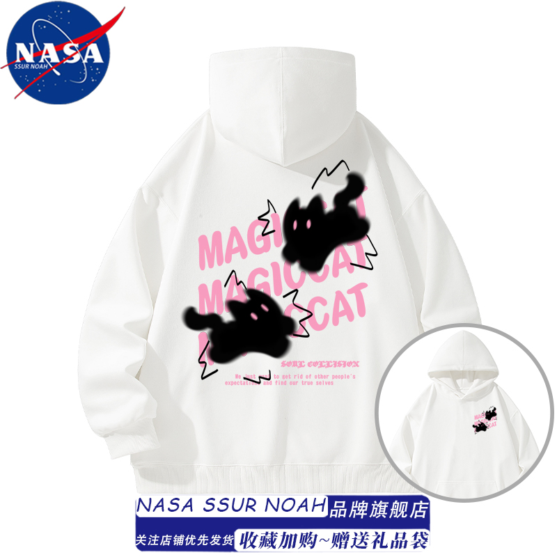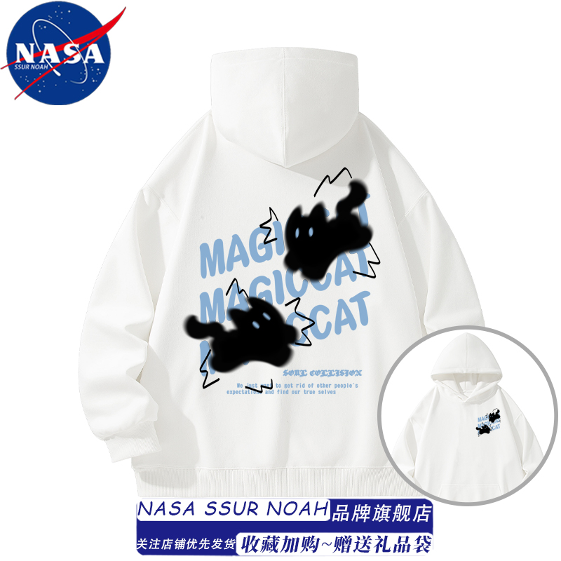 NASA模糊猫咪慵懒风连帽卫衣女男