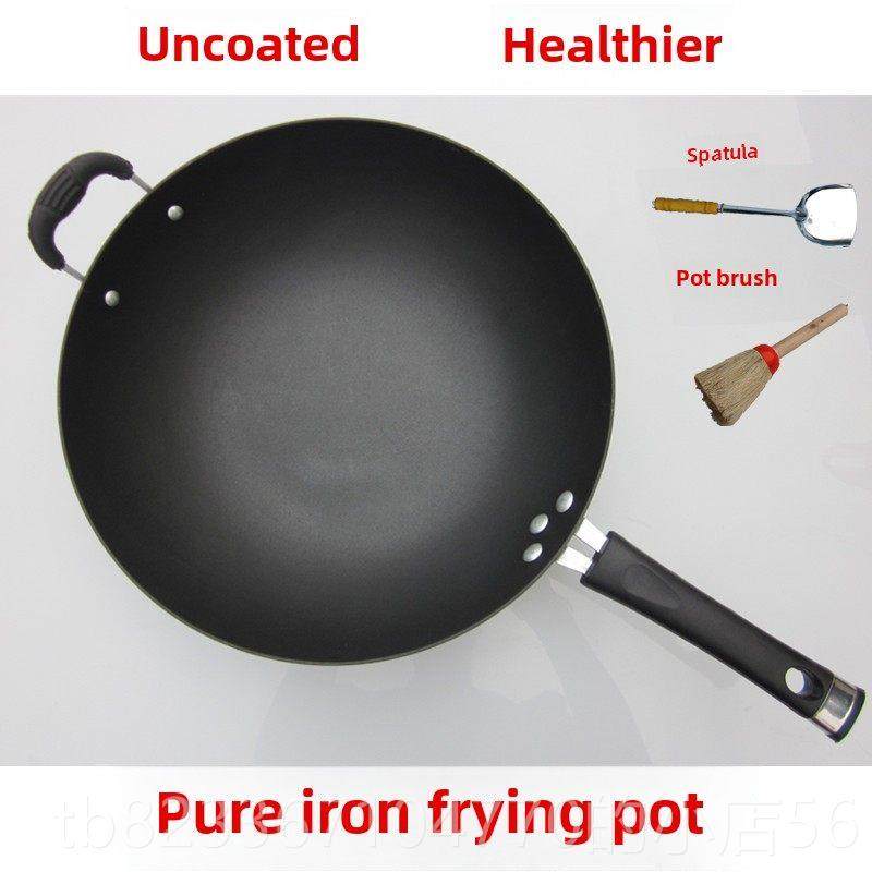高档铁川铁锅铁人牌生铁锅铸圆尖底锅无底涂陆层手工炒锅平铁锅炒