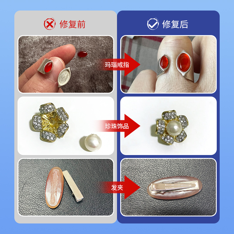 珠宝首饰专用胶水钻石珍珠饰品镶嵌耳钉无痕修复戒指玉器手镯耳环粘玉石翡翠宝石强力手工防水修补粘接万能胶