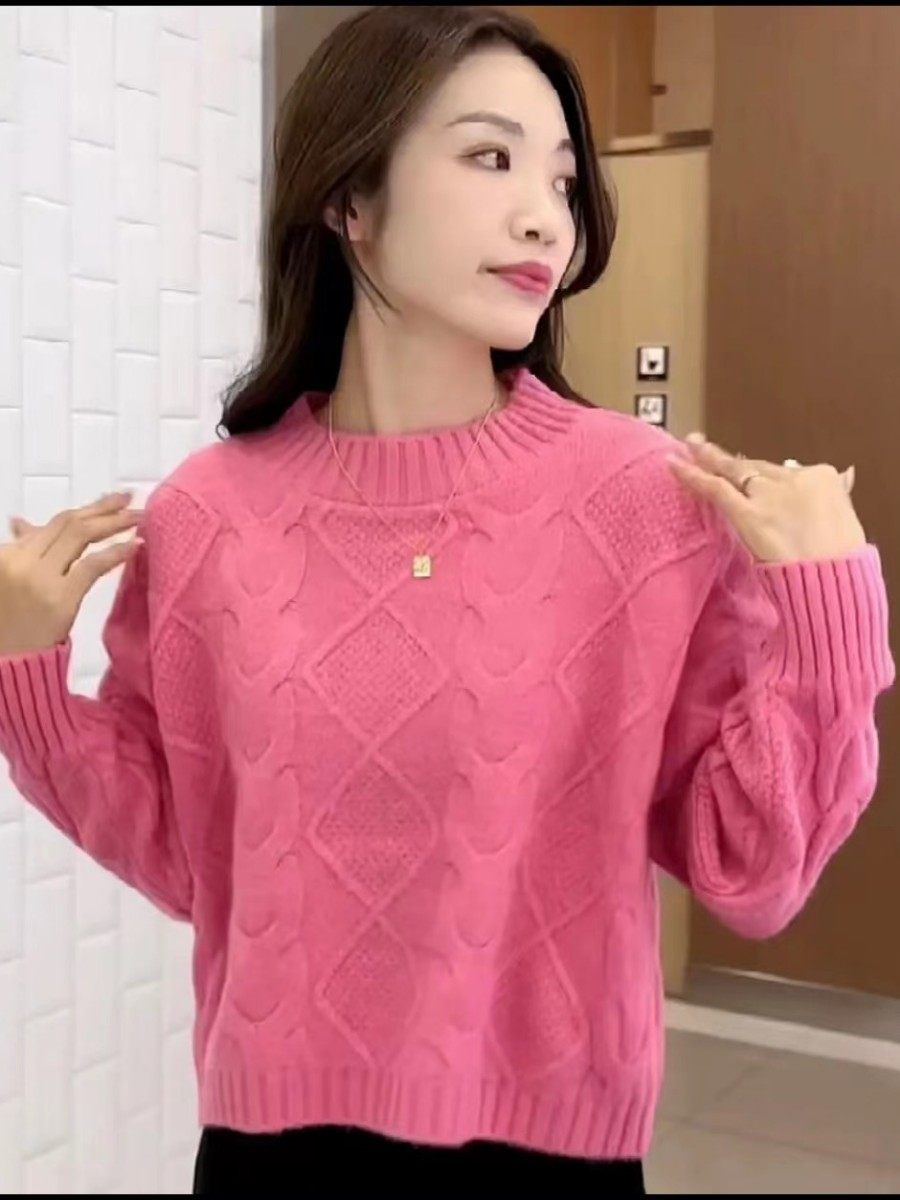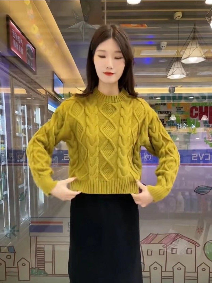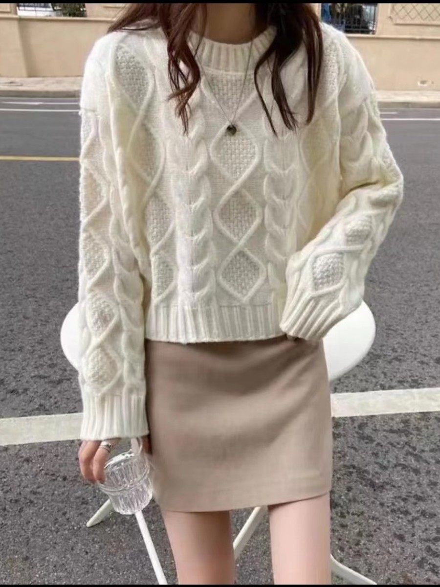 粗麻花短款毛衣女半身裙两件套2025秋冬新款宽松套头百搭休闲套装