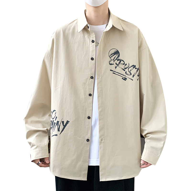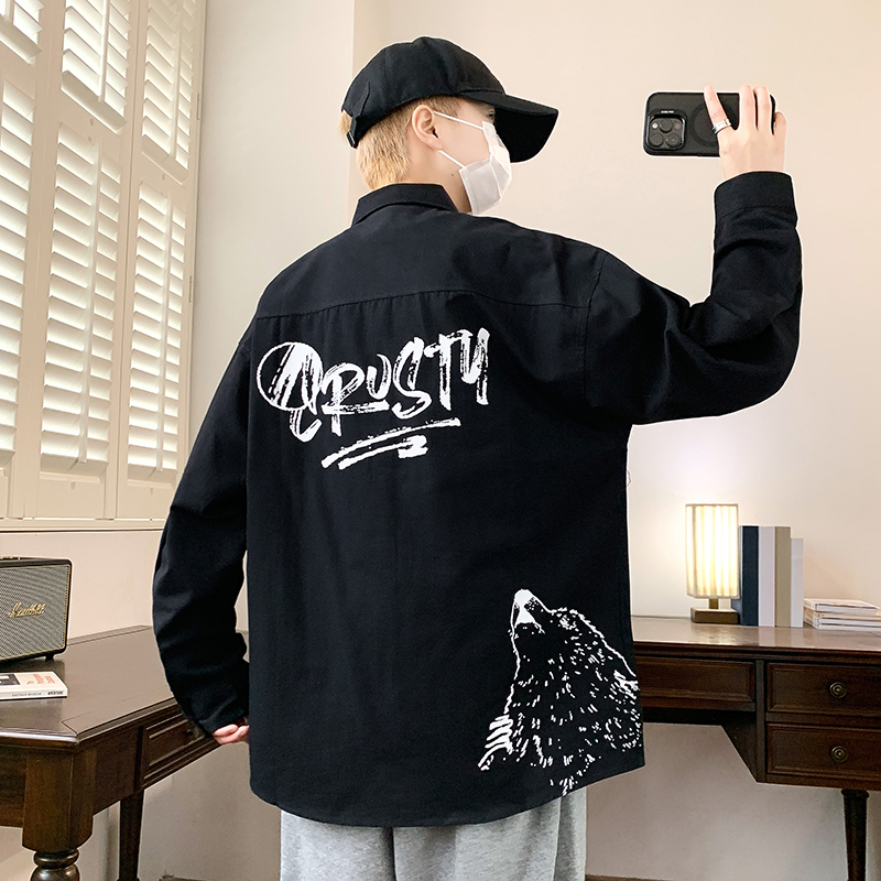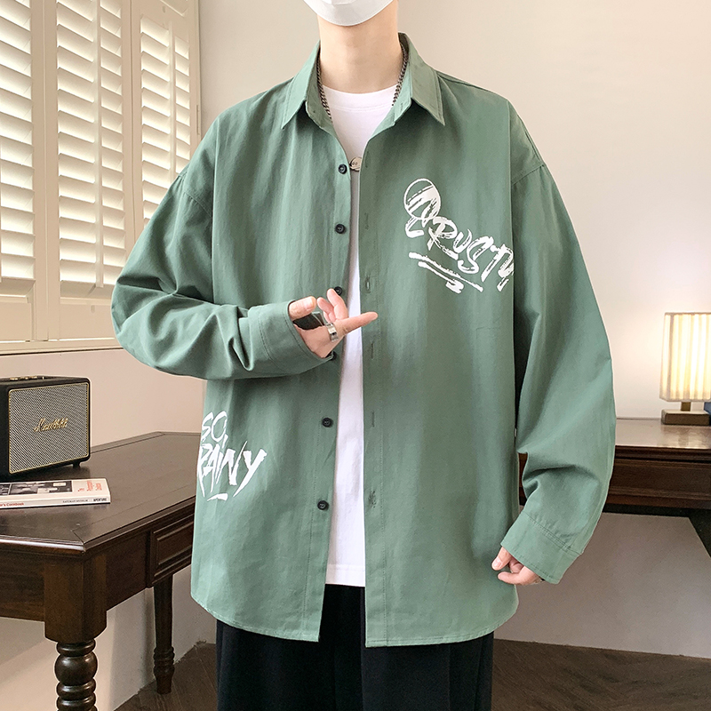 长袖衬衫男款纯棉工装2026春秋青少年学生休闲帅气衬衣服外套以純