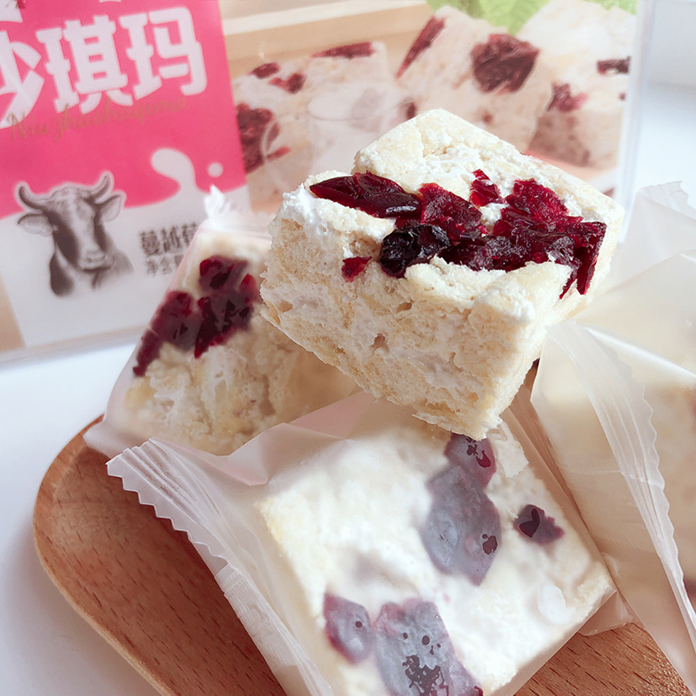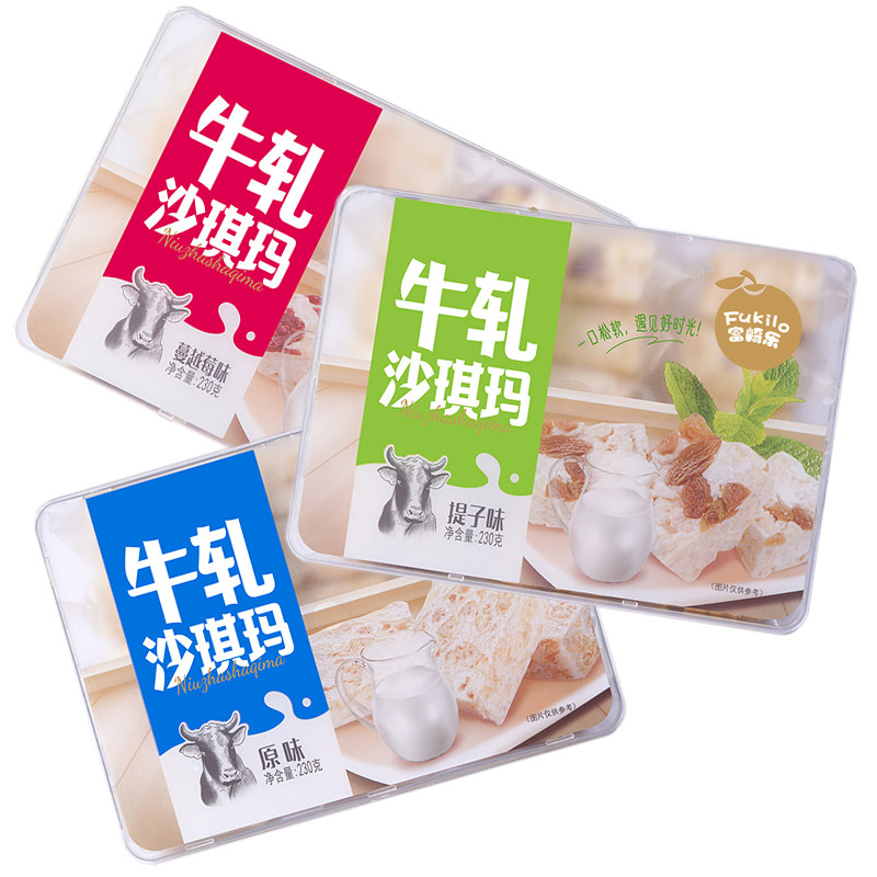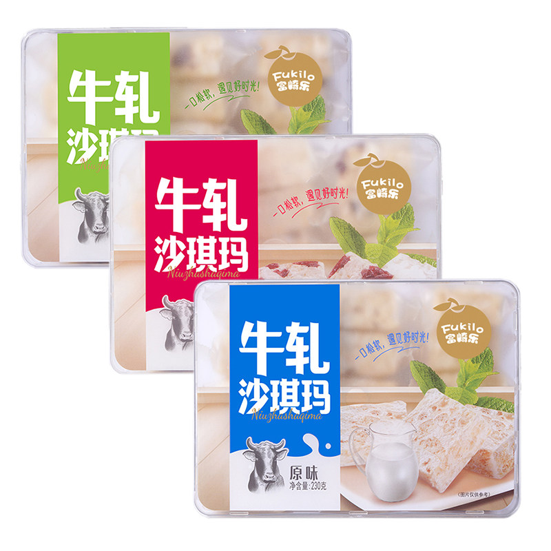 富崎乐牛轧沙琪玛原味蔓越莓提子味独立包装饼干糕点休闲零食