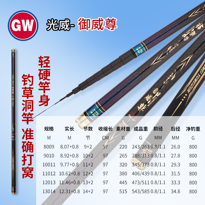 光威鱼竿御威尊自动配锥超硬19调强力手杆12米炮杆打窝长节钓鱼竿