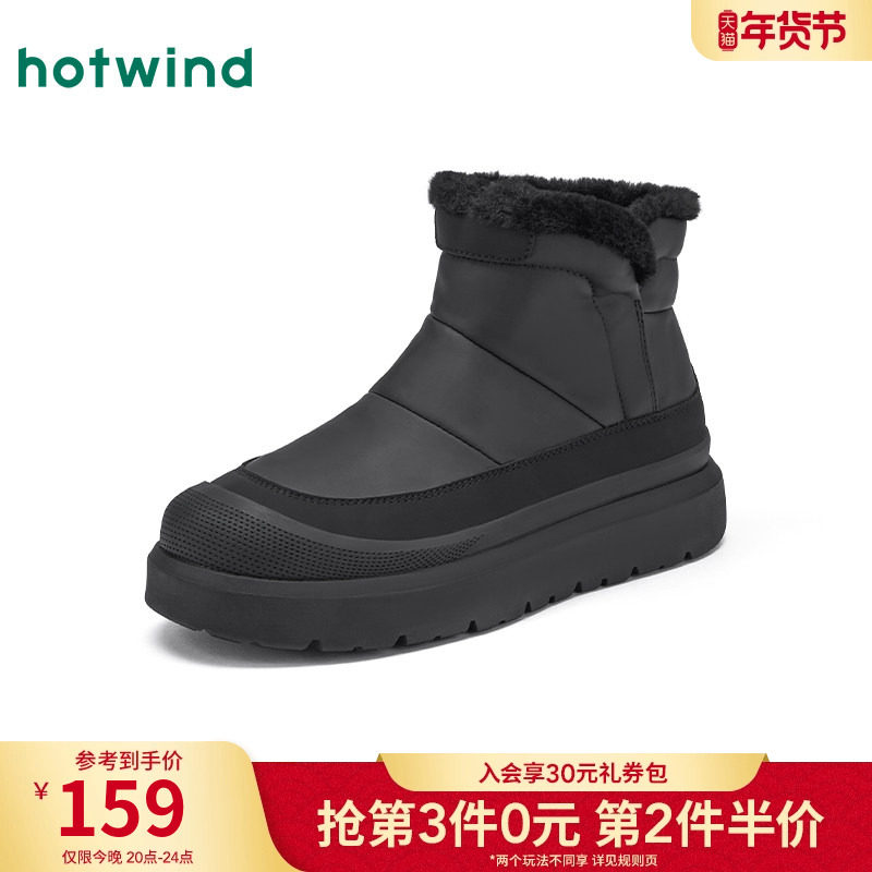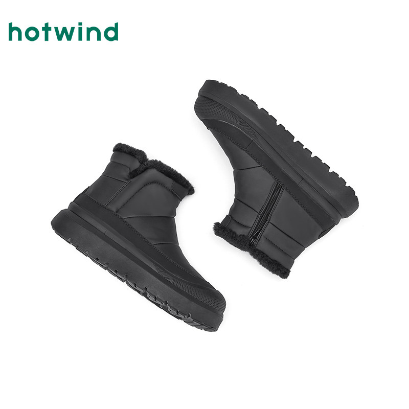 热风男鞋2025年冬季新款男士时尚休闲靴舒适保暖黑色厚底雪地靴子