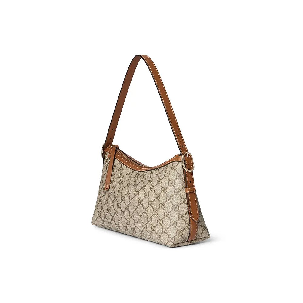 自营欧洲直邮GUCCI古驰 GG Emblem小号米色拼棕色徽标印花单肩包